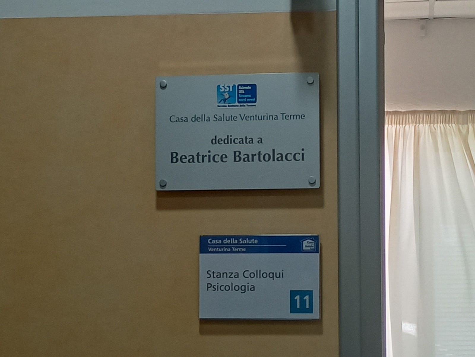 VENTURINA TERME, 22 giugno 2023 – Una targa commemorativa in ricordo di Beatrice Bartolacci, storica assistente sociale scomparsa lo scorso anno, è stata apposta questa mattina alla porta della Sala Colloqui nella nuova Casa della Salute di Venturina Terme. Bertolacci, nei lunghi anni di servizio sul territorio è stata apprezzata per le sue doti umane e professionali che sapeva fondere insieme, ed essere punto di riferimento in mille situazioni.