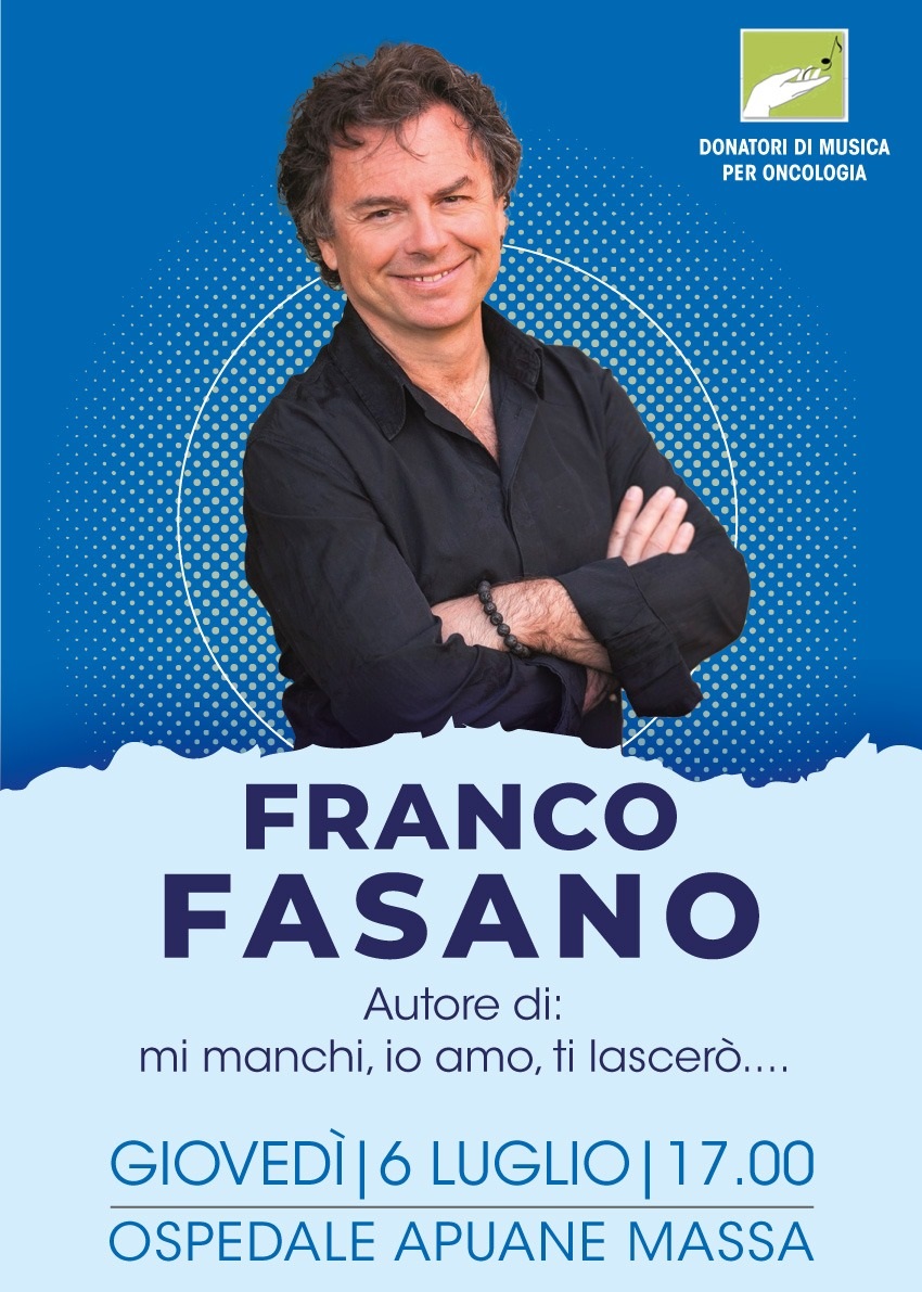 Massa, 5 luglio 2023 - Donatori di musica nuovamente protagonisti all’ospedale Apuane, con un evento straordinario che vedrà la partecipazione di un importante nome della musica italiana: il cantante e autore di canzoni di successo Franco Fasano. L'appuntamento è per giovedì 6 luglio alle ore 17 all'ospedale Apuane.