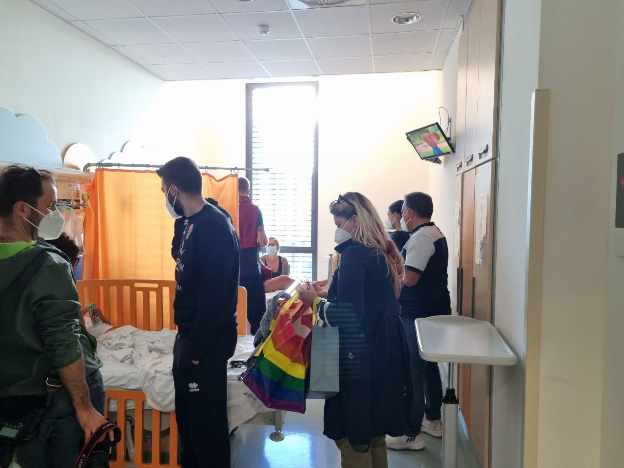 In allegato alcune immagini della delegazione nella hall dell’ospedale e poi in reparto