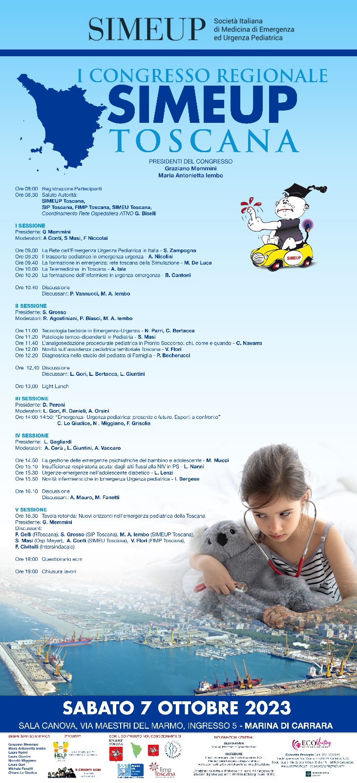 Carrara, 18 settembre 2023 – Si parlerà del presente e del futuro dell’emergenza urgenza pediatrica nel congresso regionale della Società Italiana di Medicina Emergenza Urgenza Pediatrica – SIMEUP in programma il 7 ottobre (dalle ore 8.30 alle 19) nella Sala Canova del Complesso Fieristico di Marina di Carrara in via Maestri del Marmo.