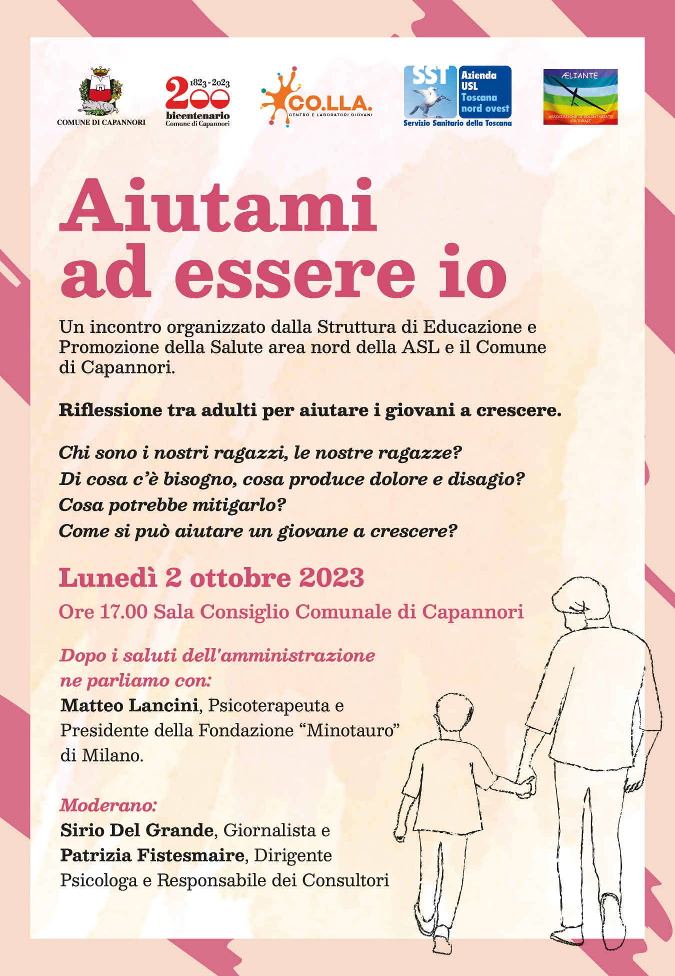 Capannori, 26 settembre 2023 - “Aiutami ad essere io” è il titolo dell’incontro organizzato per lunedì 2 ottobre a partire dalle ore 17 nella sala del consiglio comunale di Capannori dall’Amministrazione comunale e dall’Azienda USL Toscana nord ovest, insieme al Centro e Laboratori Giovani (CO.LLA.) e all’associazione di volontariato culturale Aeliante.