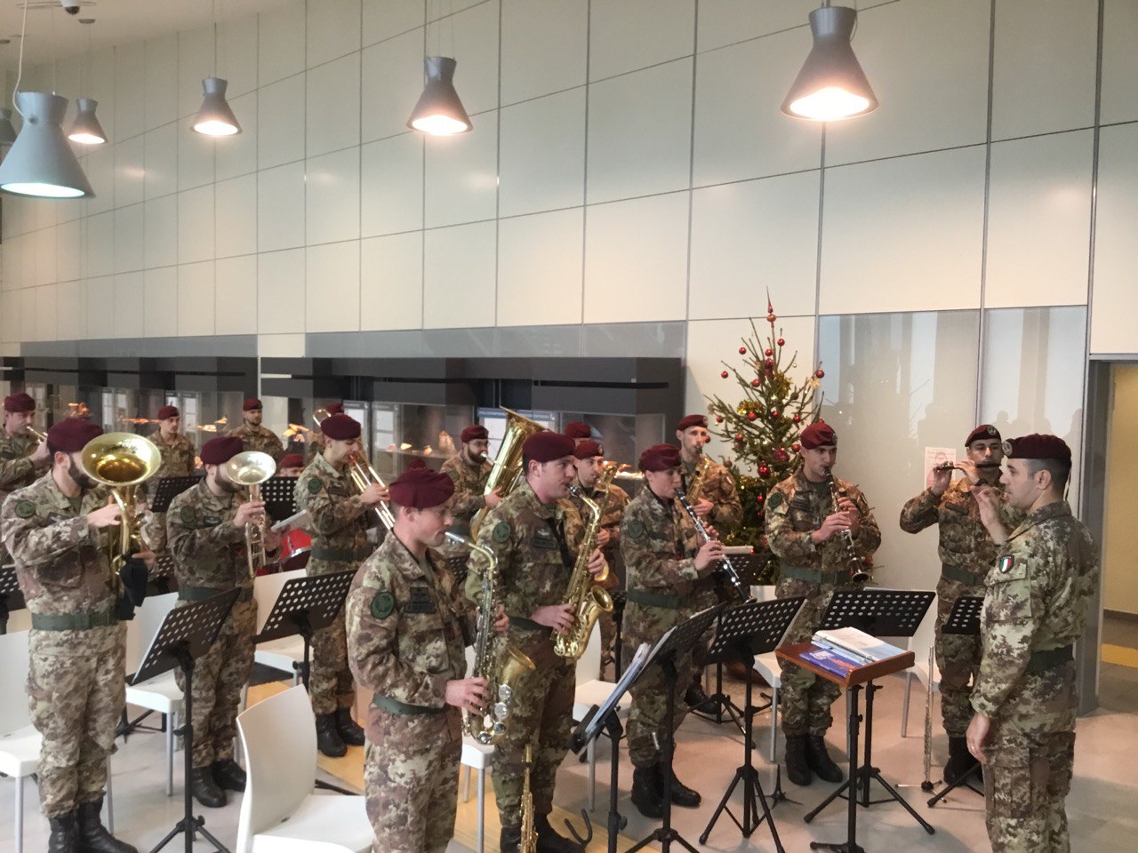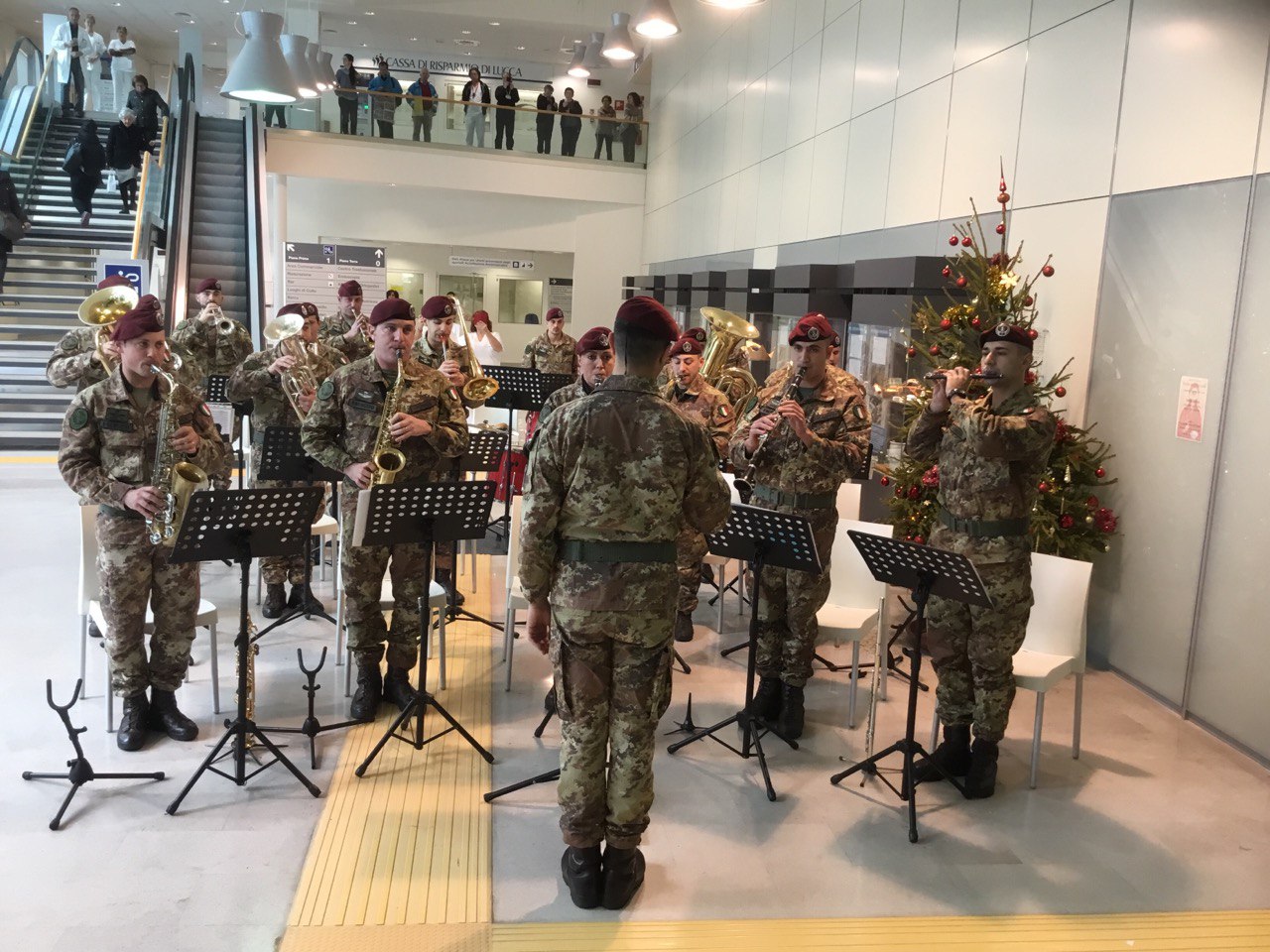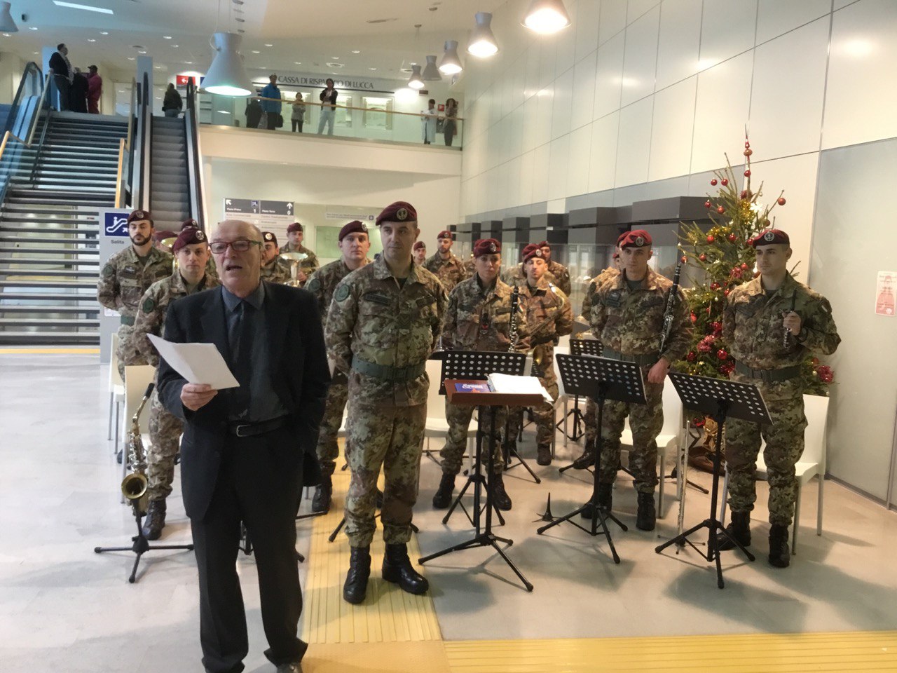 Seguirà, alle ore 10 nella hall del San Luca, il concerto della banda musicale della brigata paracadutisti Folgore, inquadrata organicamente nel Centro addestramento paracadutismo di stanza a Pisa, con un organico di media banda composto da militari paracadutisti che, oltre a svolgere le normali attività addestrative di ogni paracadutista, partecipano alle molteplici cerimonie militari e istituzionali su tutto il territorio nazionale. Inoltre, non di rado, come in questa occasione, la banda si presta ad attività d’intrattenimento con l’esecuzione di un repertorio che va oltre quello solito di marce militari, inni e canti di Specialità, riscuotendo notevole successo.