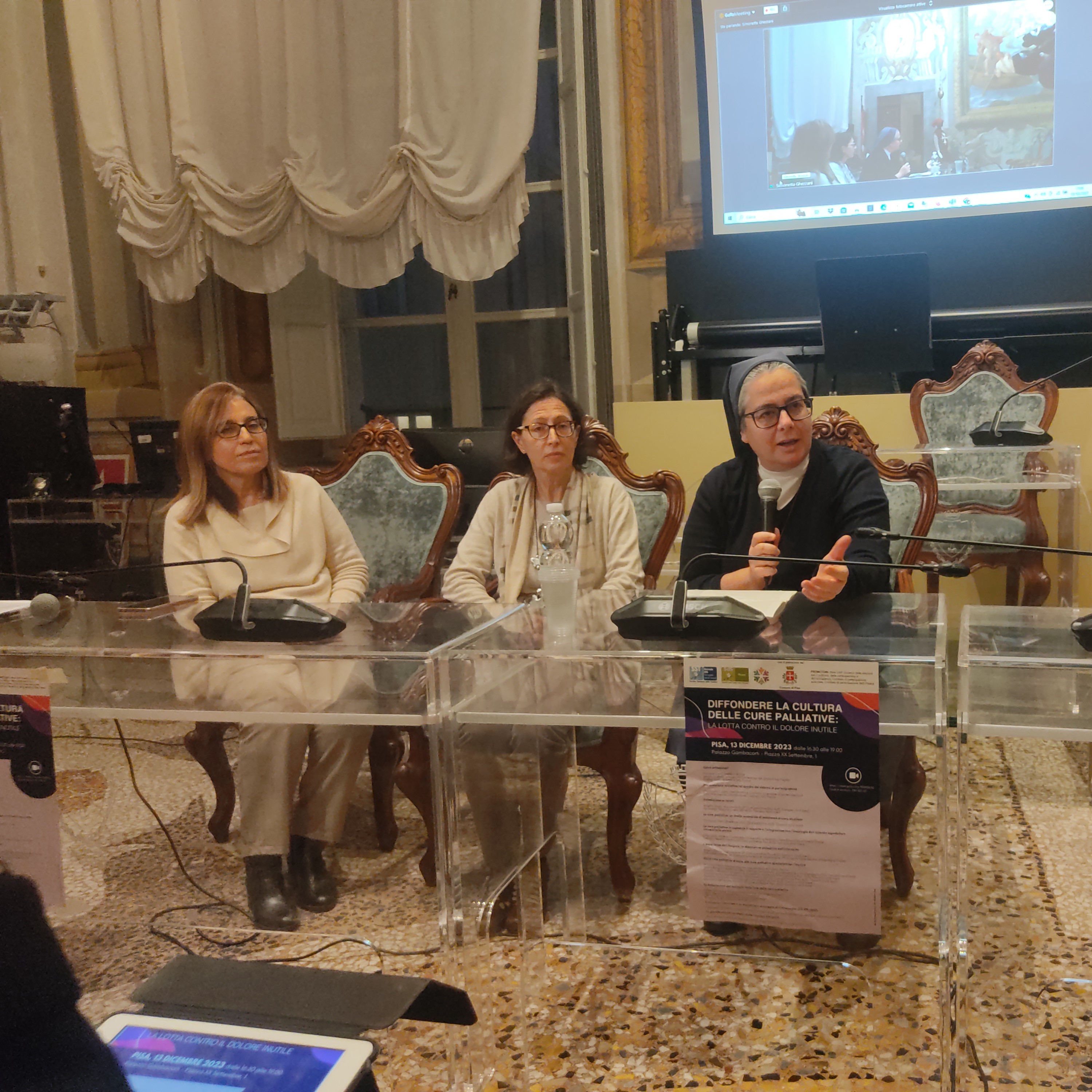 Pisa, 18 dicembre 2023. Lottare contro il dolore inutile. E' questo lo scopo delle cure palliative, rivolte ai pazienti con una malattia che non risponde più ai trattamenti. L'Azienda USL Toscana nord ovest ha promosso otto incontri, su tutto il proprio territorio, per far conoscere questo ambito di cura, di cui occorre promuovere la consapevolezza. L'ultimo si è svolto a Pisa, nei giorni scorsi, a palazzo Gambacorti.