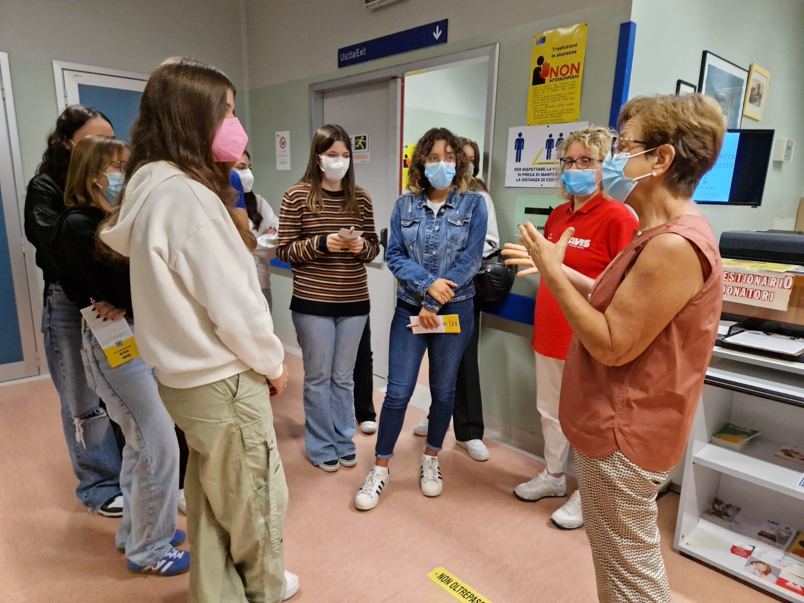 Nelle foto alcune immagini della visita degli studenti al centro trasfusionale dell’ospedale di Cecina.
