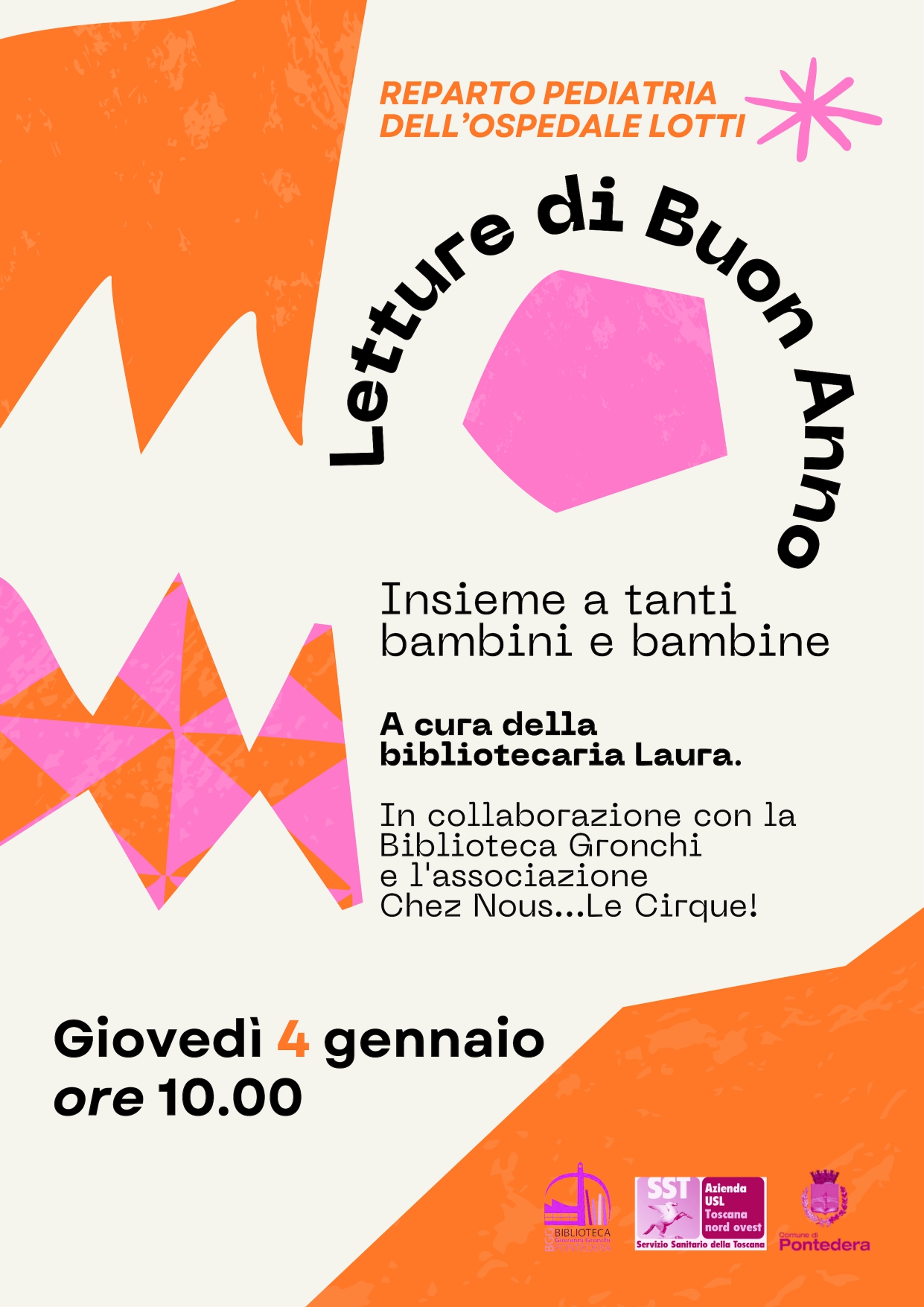 PONTEDERA, 3 gennaio 2024 – Domani, giovedì 4 gennaio, a partire dalle 10 si svolgerà nel reparto di Pediatria dell'ospedale Lotti di Pontedera “Letture di buon anno”, evento realizzato in collaborazione con la Biblioteca Giovanni Gronchi e l'associazione Chez Nous.. Le Cirque!