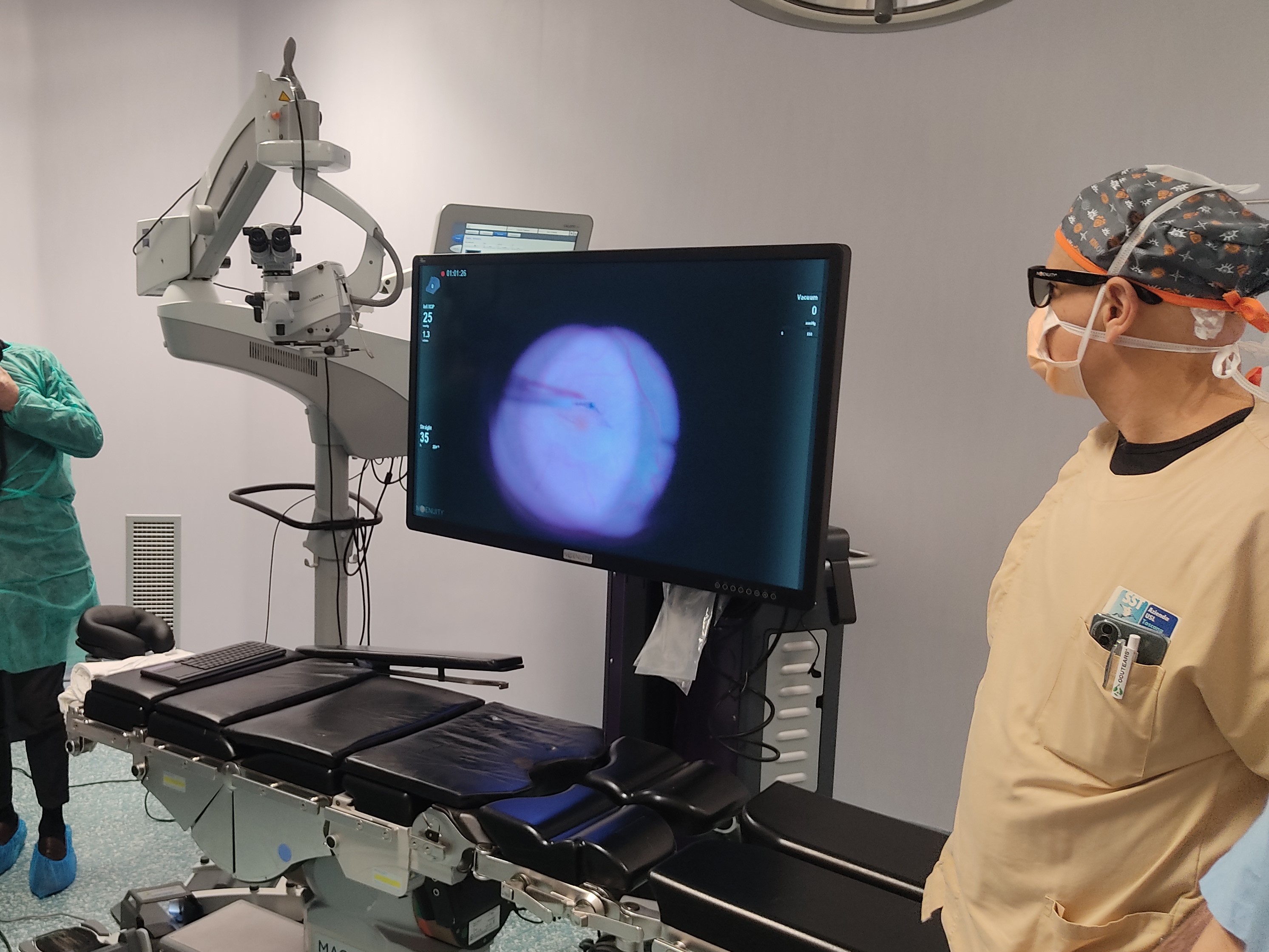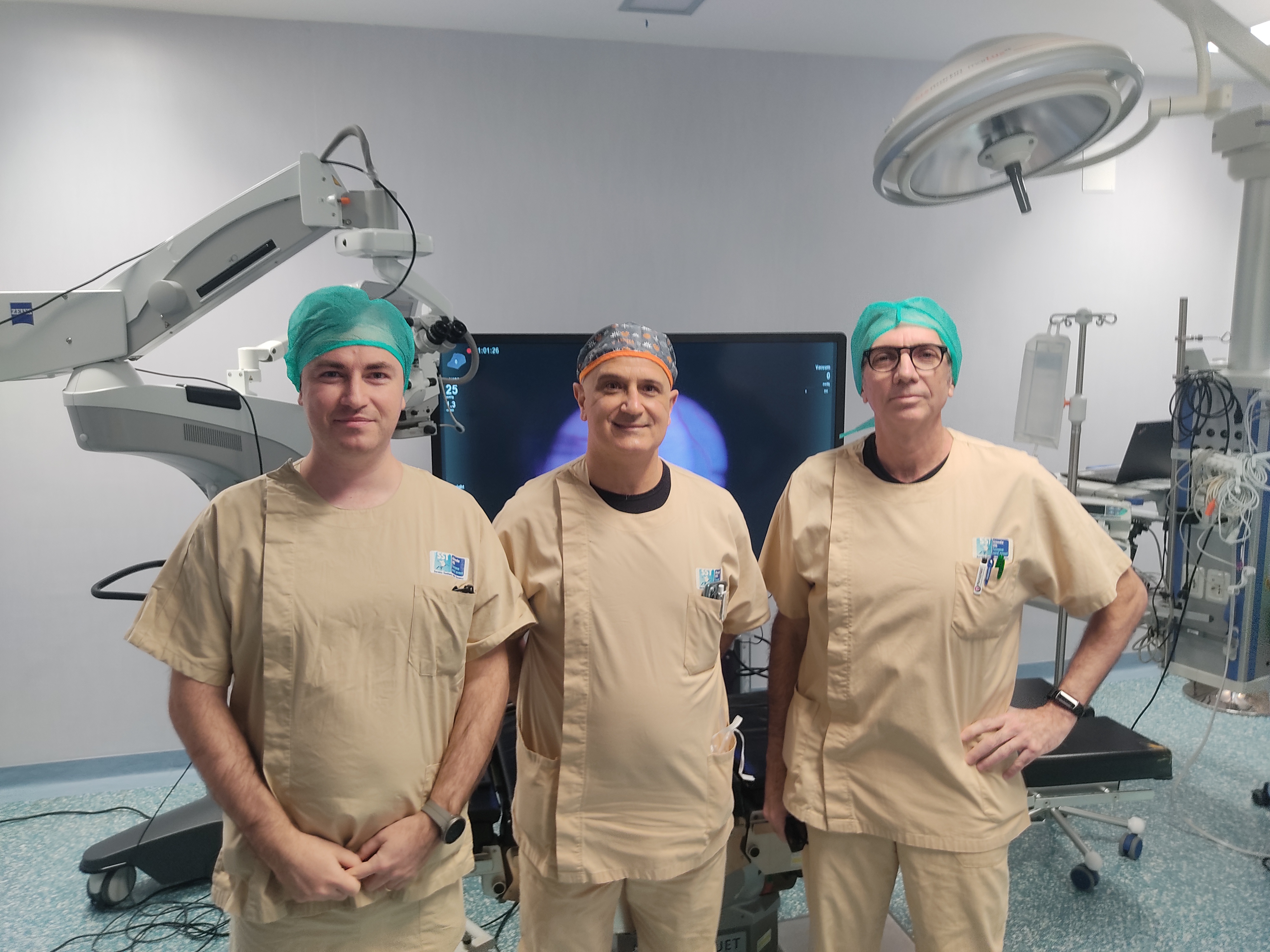 «Tra i principali vantaggi di operare con il visualizzatore 3D c’è quello di rielaborare le immagini acquisite durante l’intervento per evidenziare dettagli che con il microscopio operatorio non sarebbe possibile cogliere – dice Emanuele Di Bartolo, medico dell’equipe di oculistica di Pontedera – e questo permette di operare meglio».