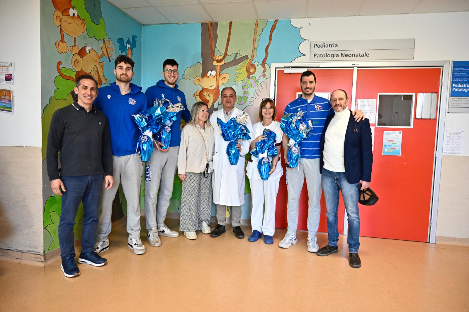 LIVORNO, 13 marzo 2024 – Alcuni giocatori e membri dello staff della Pallacanestro Livorno sono venuto questa mattina all’ospedale per consegnare le uova di Pasqua destinate ai piccoli ricoverati nel reparto di Pediatria diretto dal dottor Roberto Danieli.