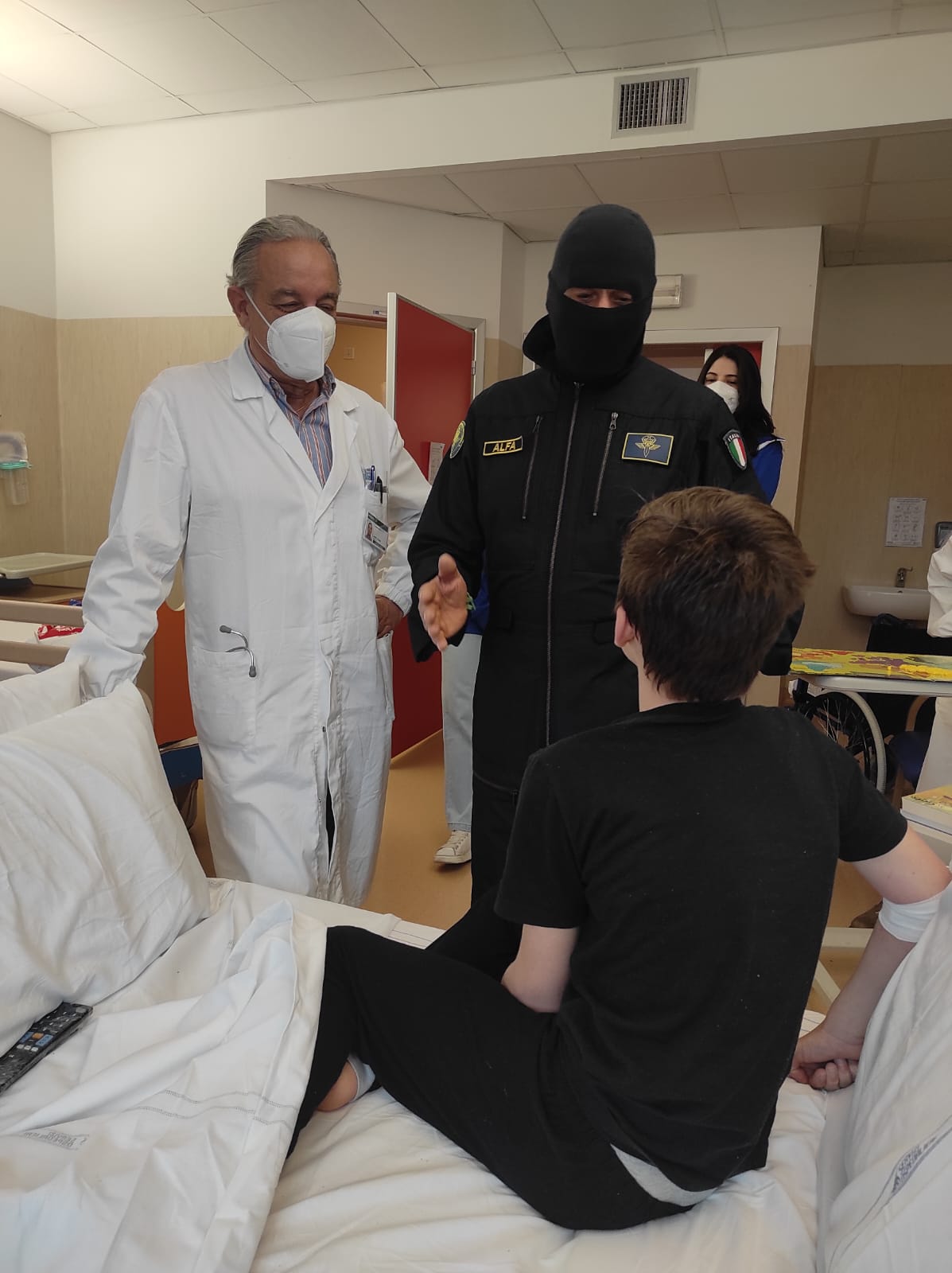 LIVORNO, 27 marzo 2024 – Il Comandante Alfa, celebre fondatore del Gruppo Intervento Speciale (Gis) dell'Arma dei Carabinieri ha consegnato personalmente al reparto di Pediatria dell’ospedale di Livorno, uova di Pasqua, giochi, libri e altro materiale da regalare ai piccoli pazienti ricoverati nel reparto dell’ospedale di Livorno. Ad organizzare l’evento una squadra consolidata formata dai promotori locali dell’iniziativa, Paolo Iovino con la moglie Irene Pazzagli e Stella L'erede. Ad accompagnarli anche una nutrita rappresentanza della squadra Pallacanestro Livorno con il presidente Francesco Farneti, Renzo Nista in qualità di sponsor e sostenitore della Pielle Livorno, ma anche amico del comandante Alfa, e le giocatrici della squadra femminile, Marta Castiglione e Lisa Cecconi.