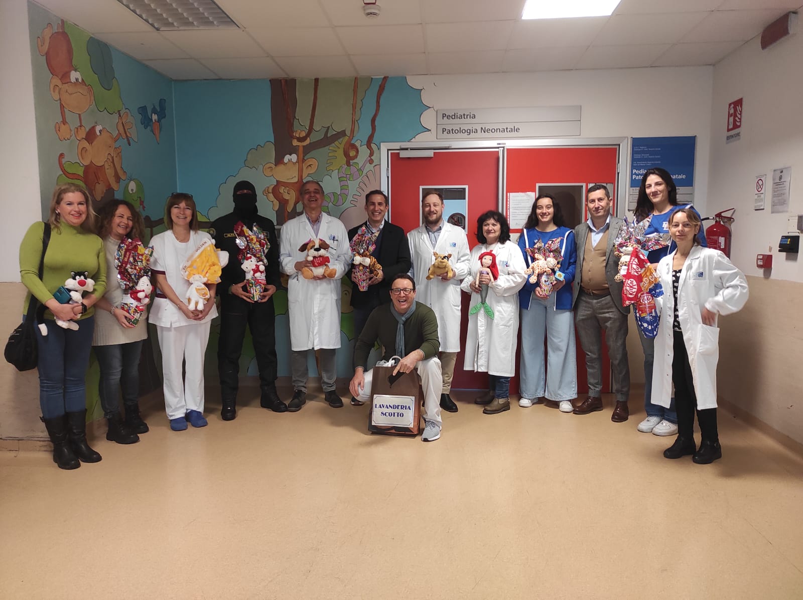 Questo il messaggio dello staff del comandante Alfa: Un affettuoso ringraziamento alla famiglia Fioravanti per i peluches donati ai bambini ed alla "Lavanderia Scotto" sempre pronta e disponibile a provvedere ad igienizzare il materiale. Non resta che inviare un augurio di buona Pasqua ai bambini, alle loro famiglie, a tutto il personale del reparto ed ai partecipanti all'evento. Grazie.