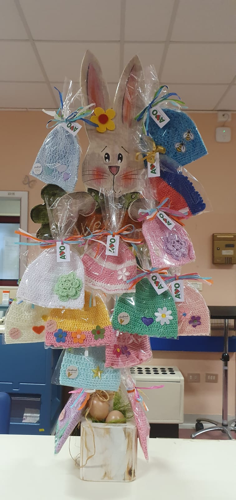 CECINA, 29 marzo 2024 - L'Associazione Volontari Ospedalieri (Avo) di Cecina hanno fatto visita al Reparto di Pediatria e Ostetricia dell’ospedale di Cecina per consegnare i cappellini primaverili fatti a mano dalle loro associate che saranno donati ai neonati di questi giorni.