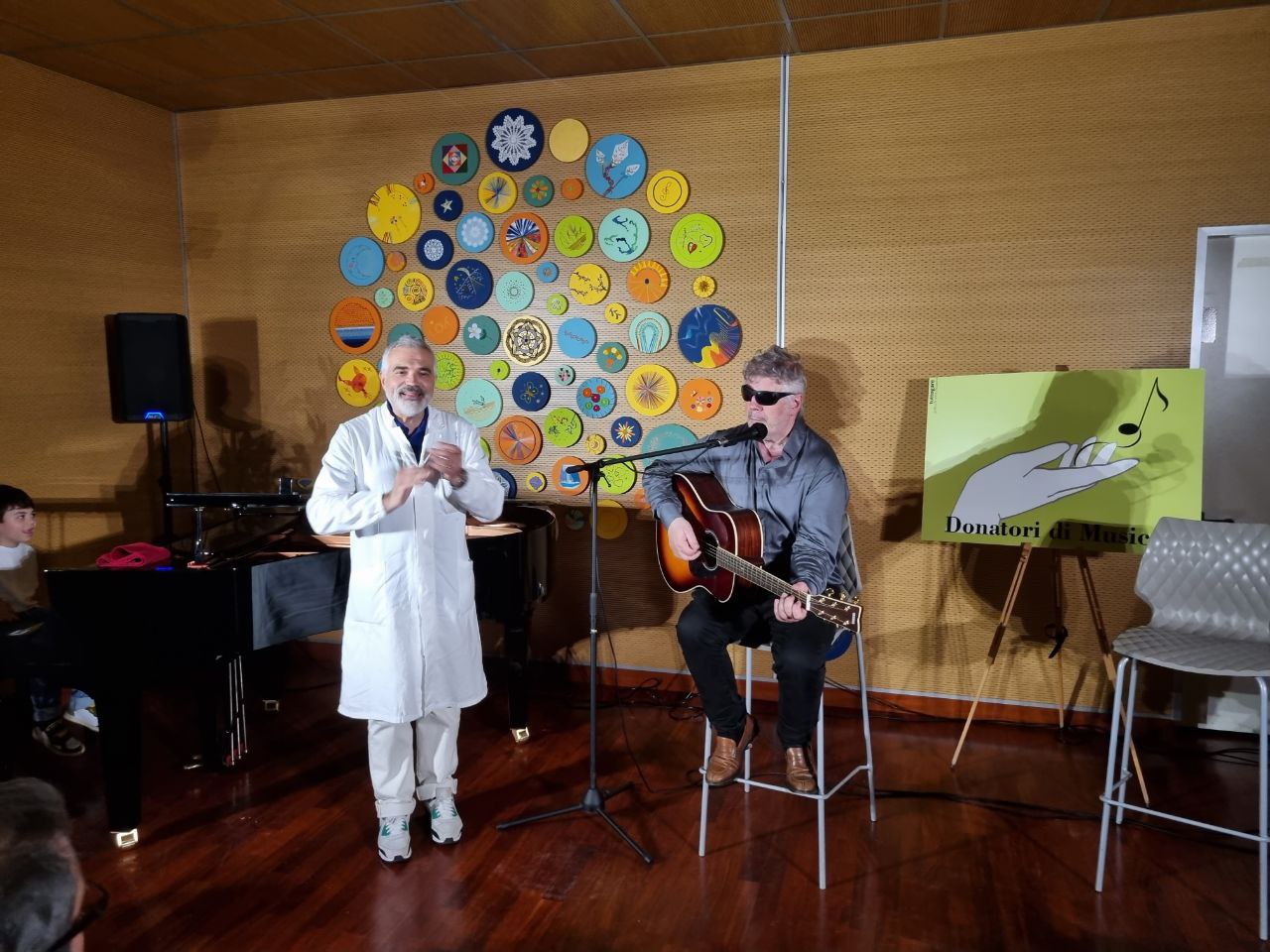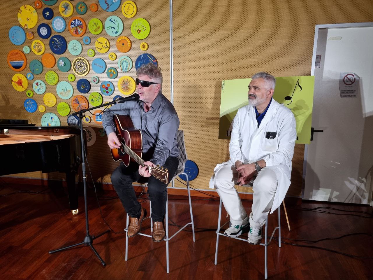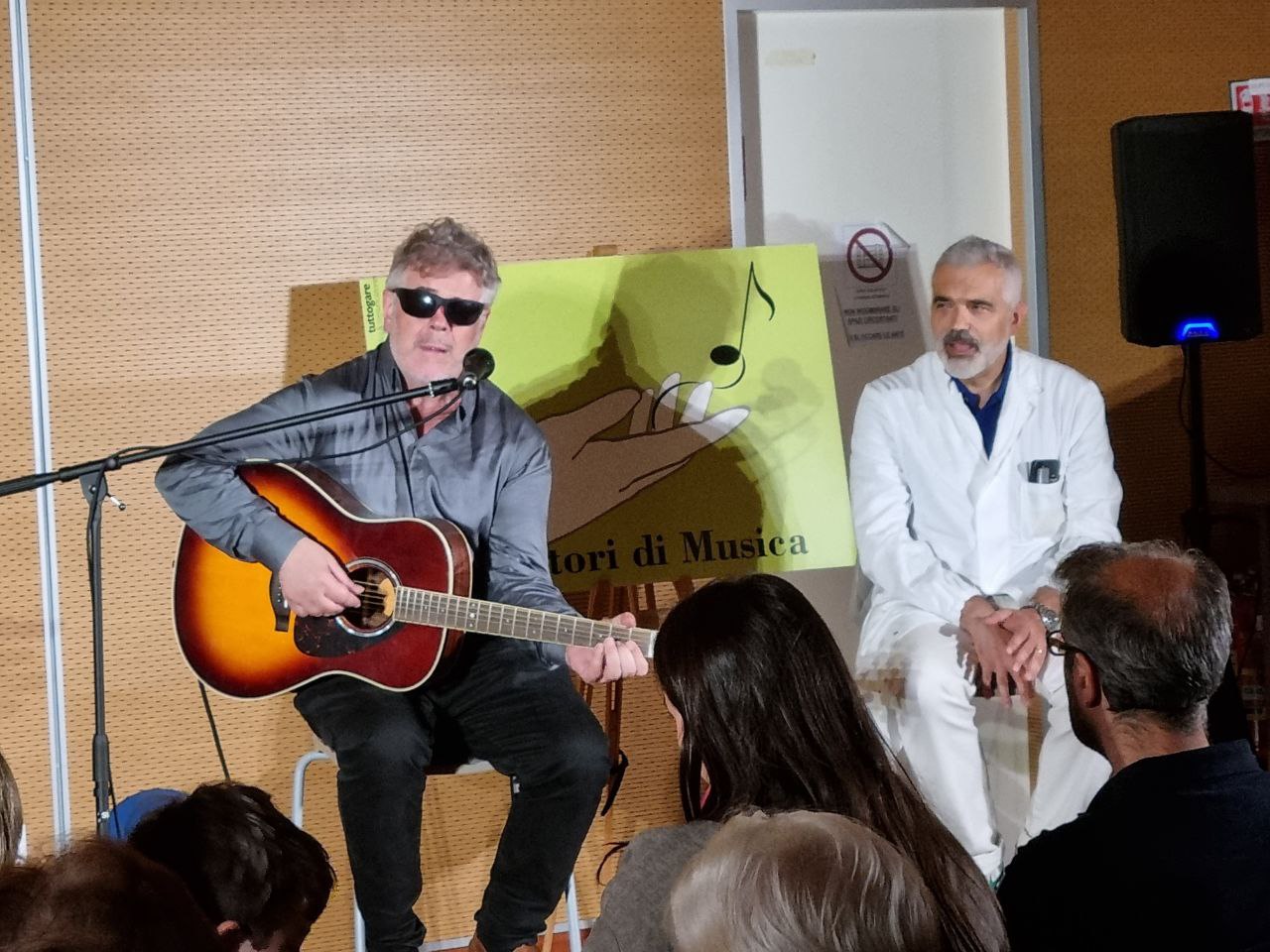 Baldi è stato accolto dal direttore dell’Oncologia, Andrea Mambrini e ha donato la sua musica e la sua voce a pazienti, familiari e personale sanitario, ripercorrendo tutta la sua carriera, dagli inizi fino ai brani più recenti.