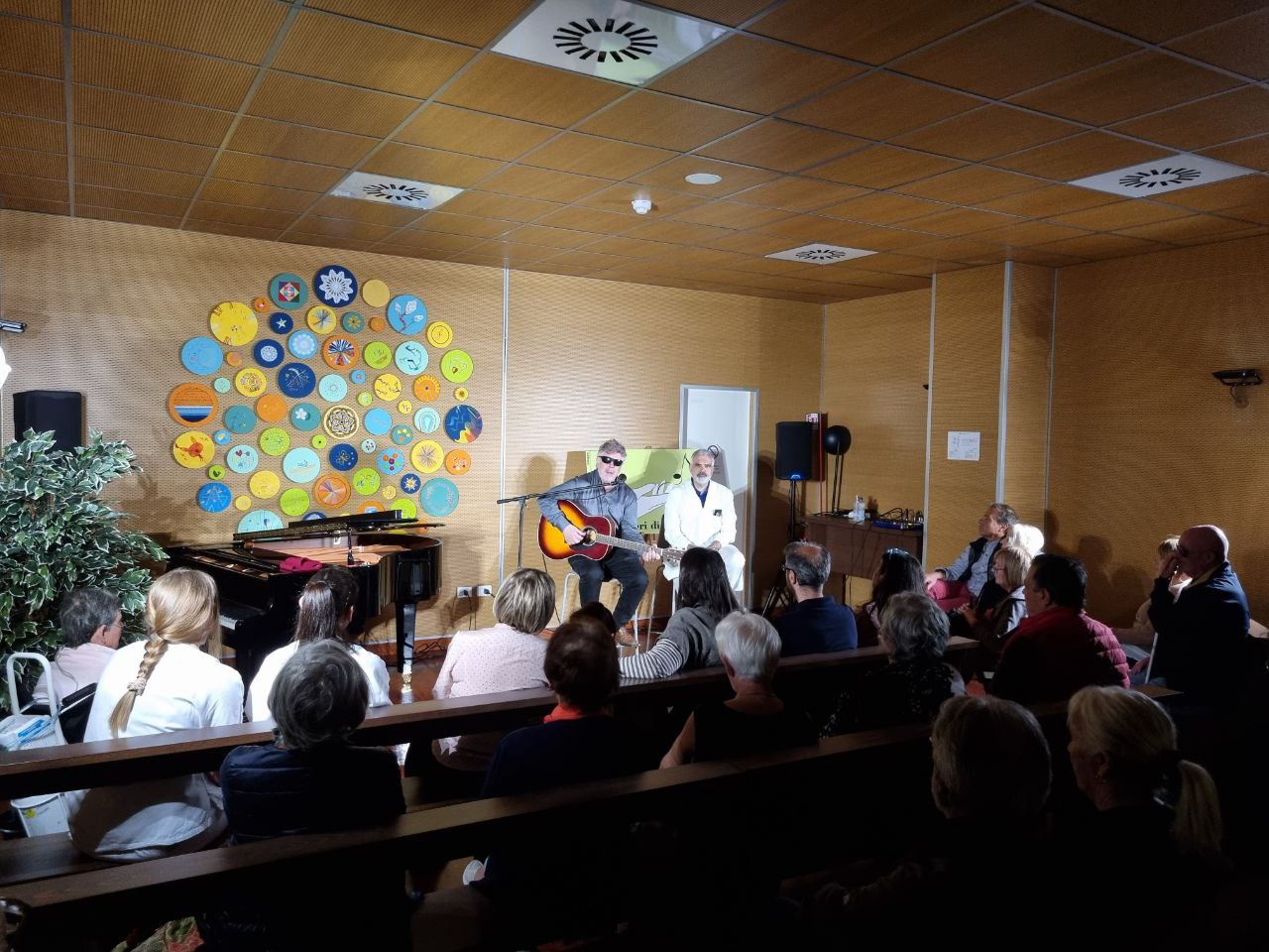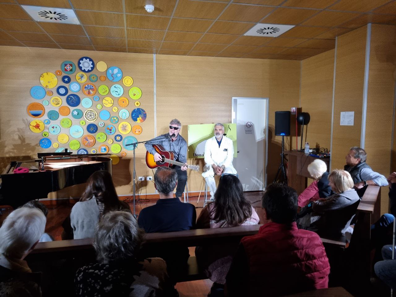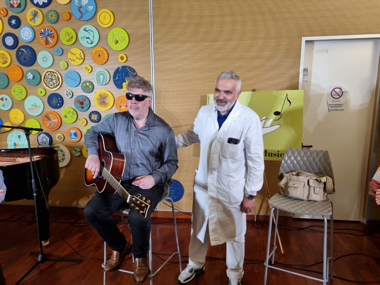 Baldi è stato accolto dal direttore dell’Oncologia, Andrea Mambrini e ha donato la sua musica e la sua voce a pazienti, familiari e personale sanitario, ripercorrendo tutta la sua carriera, dagli inizi fino ai brani più recenti.