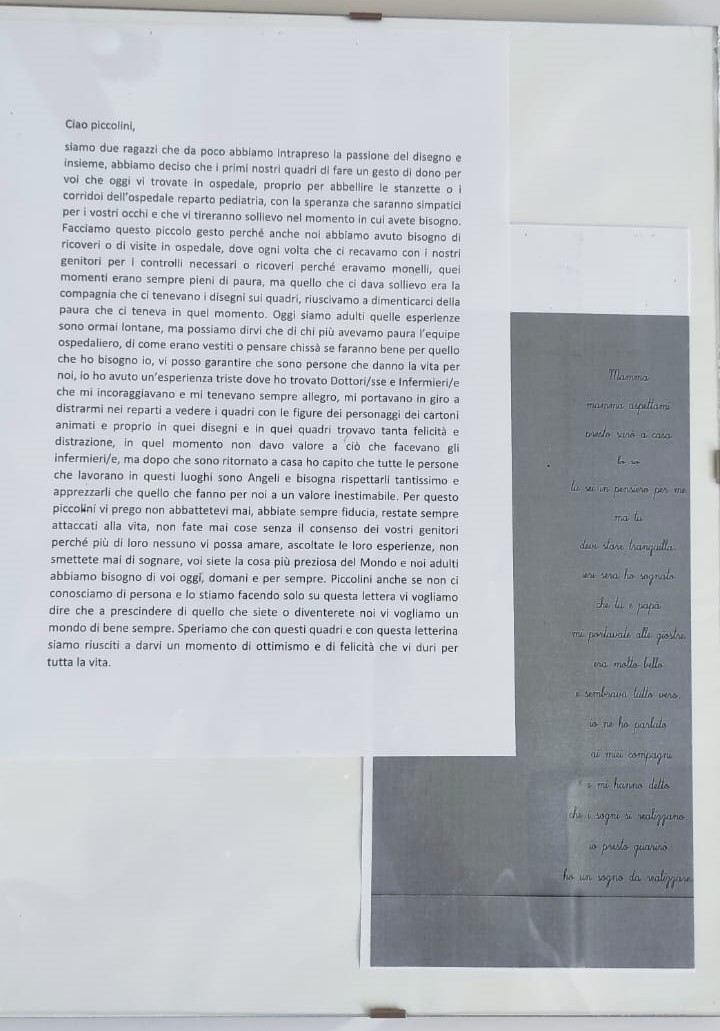 Ad accoglierli lo staff sanitario guidato dal direttore del reparto e dalla coordinatrice infermieristica che hanno espresso il loro apprezzamento per l’iniziativa invitando a portare agli autori delle opere i più sentiti ringraziamenti per il pensiero avuto e la sensibilità dimostrata.