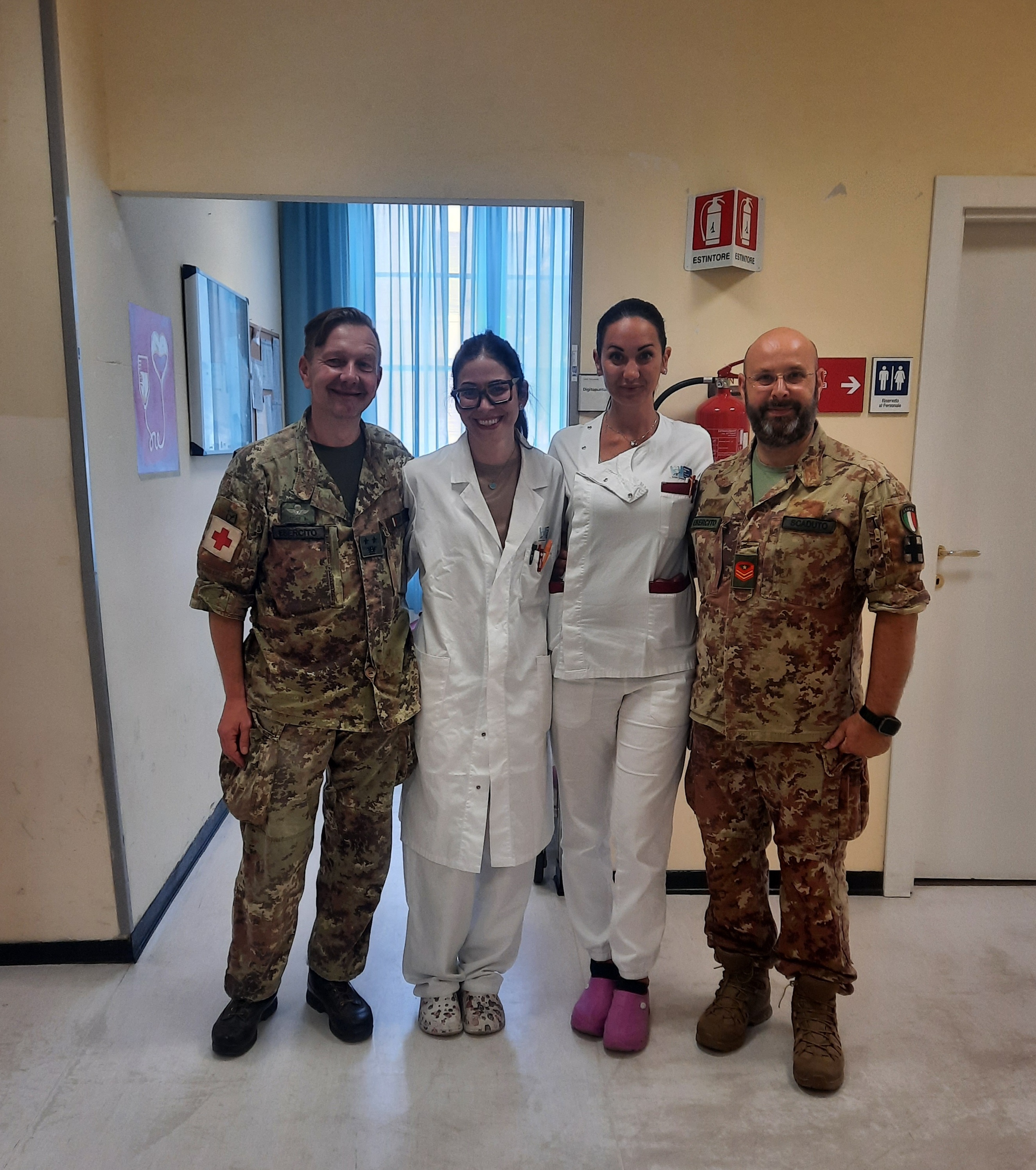 Nelle foto sono presenti il Ten.Col.(Par) Marco Santi, il GRD.A Alberto Scaduto, la dottoressa Eleonora Catarsi, la coordinatrice infermieristica Elisa Virgilio e gli infermieri Ilaria Degl'Innocenti, Barbara Tozzini, Letizia Chiocchi e Massimiliano Mastalli.