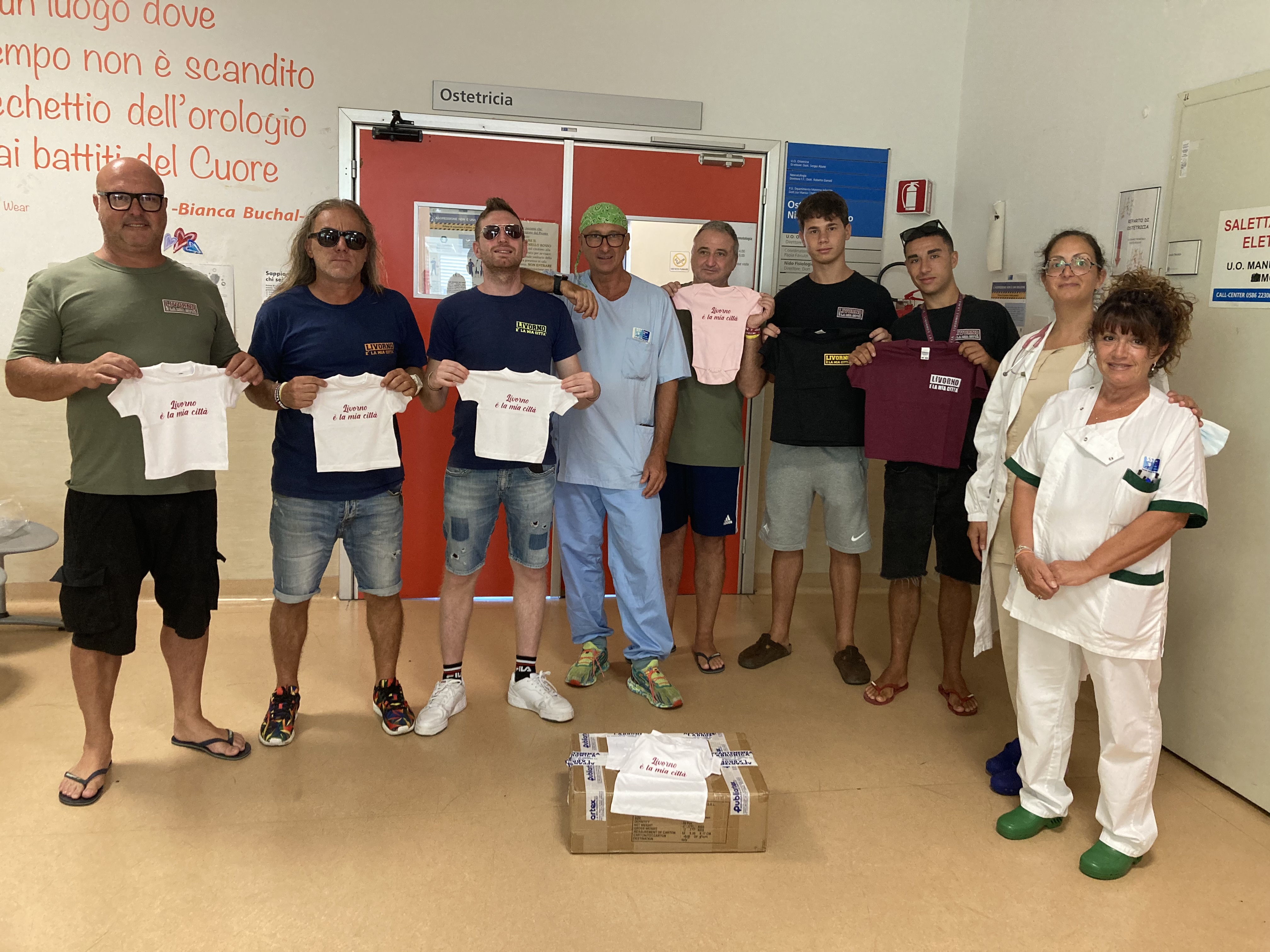 LIVORNO, 20 agosto 2024 – Oltre cento magliette e body da neonato con la scritta “Livorno è la mia città” sono stati donati ai reparti ospedalieri di Ostetricia e Pediatria da parte dell’associazione “Appartenenza Labronica”.