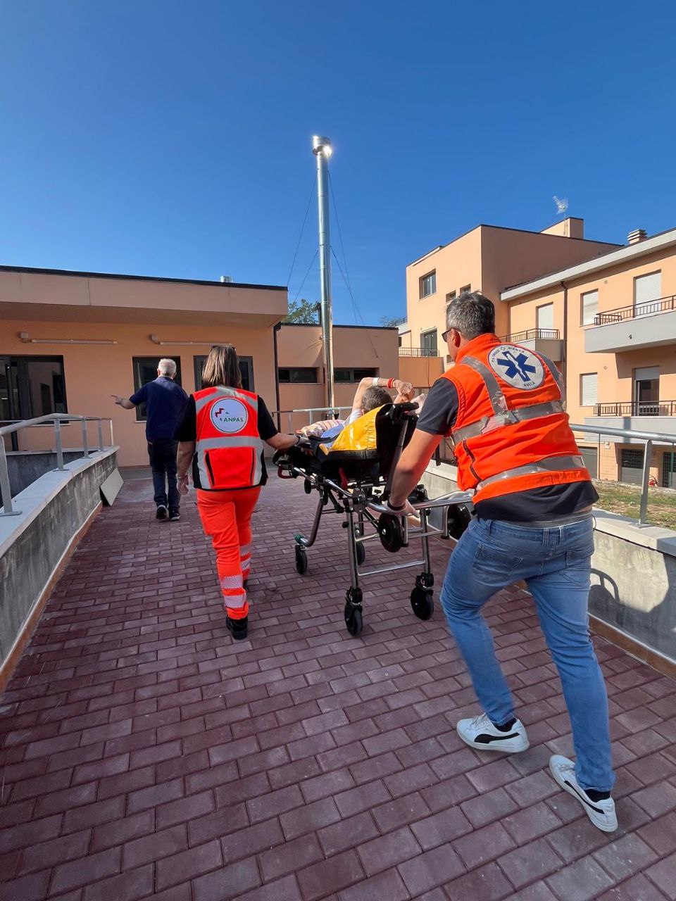 In allegato le immagini della prima paziente trasportata nella struttura, quindi l’arrivo delle altre ambulanze e anche alcune immagini dell’esterno e dell’interno della struttura di Fossone.