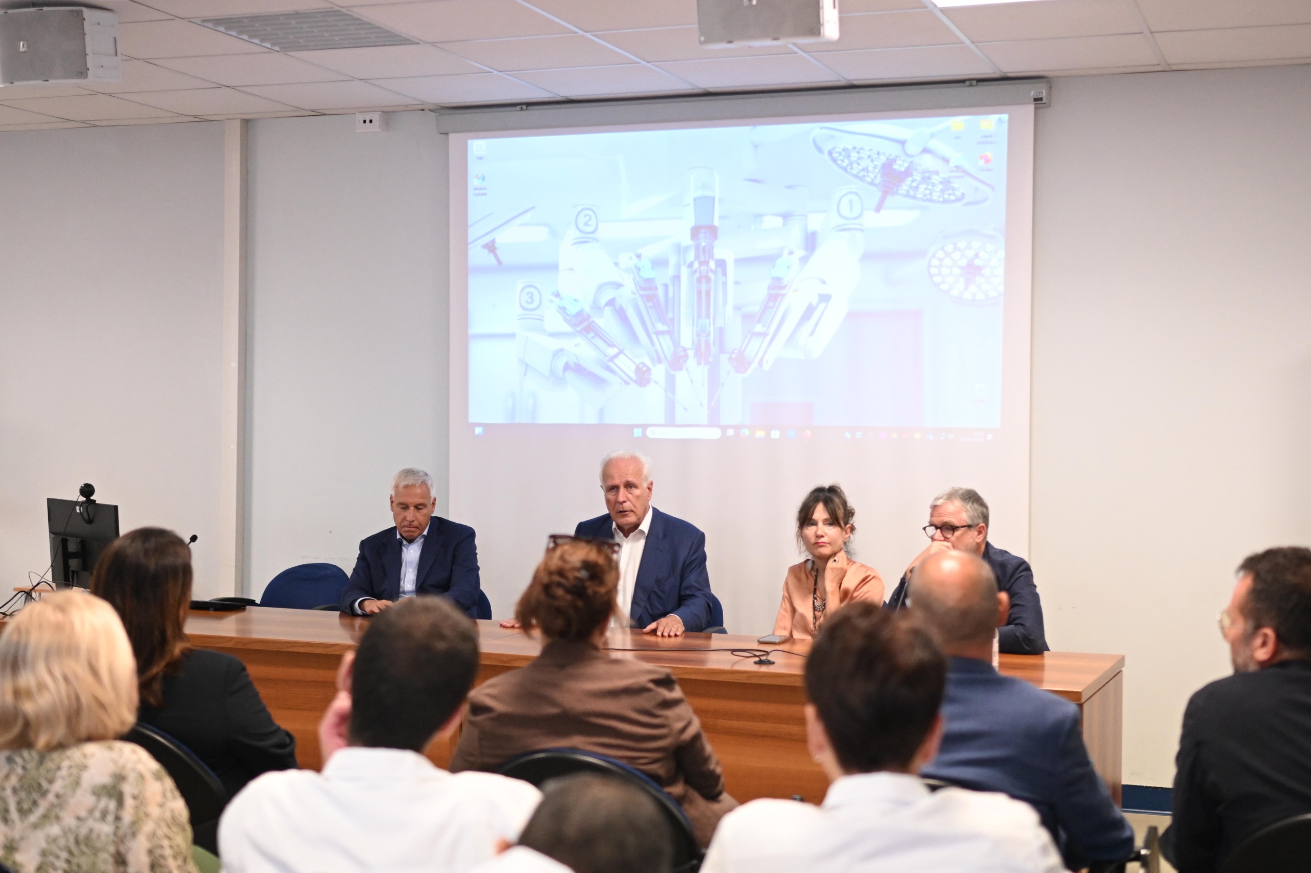 Alla conferenza stampa di presentazione del sistema robotico, invece, hanno partecipato, tra gli altri, anche la consigliera regionale Valentina Mercanti, il direttore sanitario dell’Asl Giacomo Corsini, la direttrice dell’ospedale Versilia Lisanna Baroncelli, il direttore del dipartimento delle specialità chirurgiche Andrea Carobbi, il direttore dell’area delle specialità chirurgiche dell’Asl Maurizio De Maria, il direttore della chirurgia del Versilia Marco Arganini, il direttore dell’Urologia del Versilia Sandro Benvenuti, Chiara Pini per il dipartimento delle professioni infermieristiche ed ostetriche e il direttore della zona distretto Versilia Alessandro Campani, oltre a molti direttori di struttura dell'ospedale.