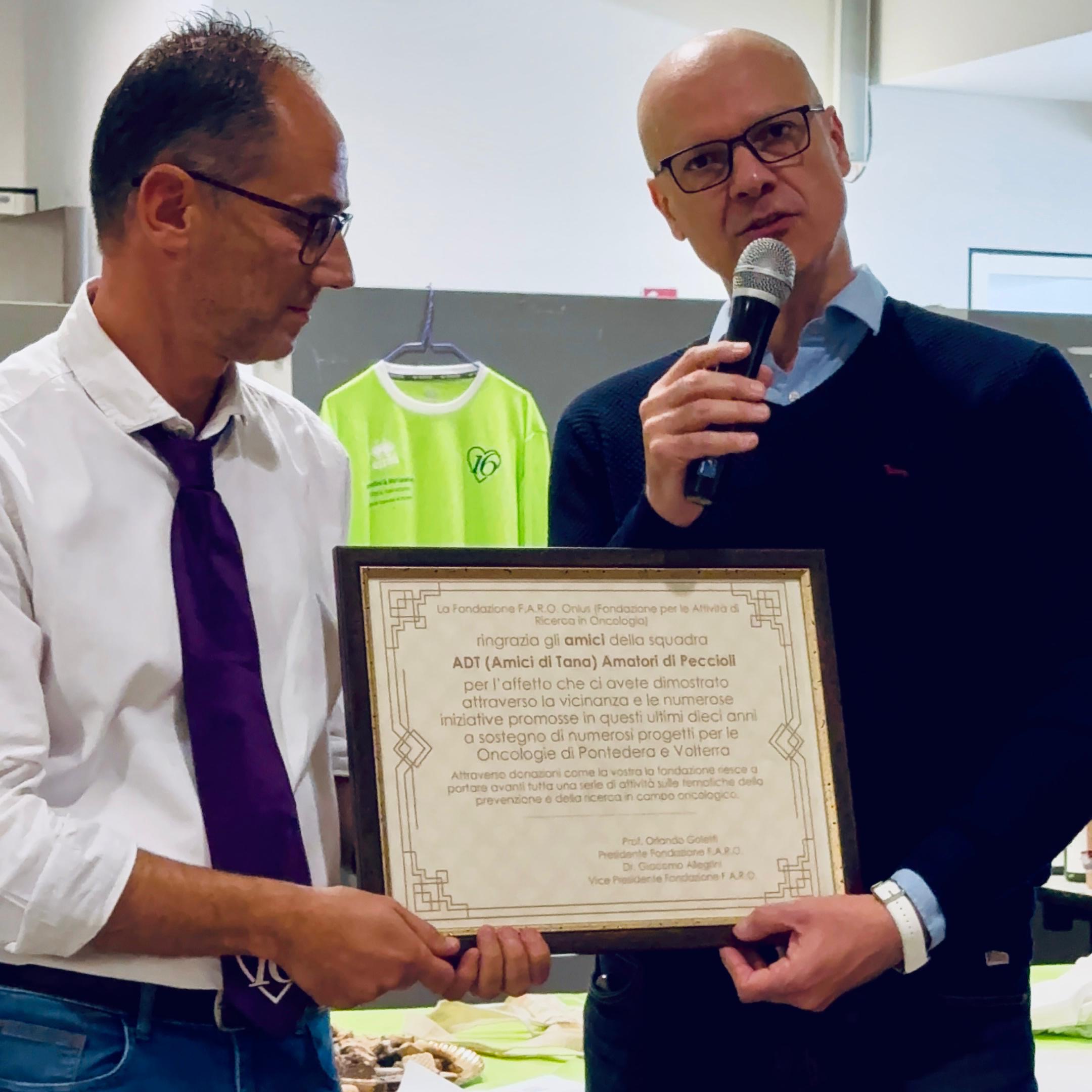 “Ringrazio davvero di cuore i ragazzi del gruppo ADT Amatori Peccioli e il suo presidente Flavio Santarnecchi - evidenzia il dottor Allegrini - che da anni ormai ci supportano, con cene di beneficenza e tanta generosità. E’ toccante vedere come questi ragazzi, a distanza di tanti anni tengano vivo il ricordo di un compagno, come se fosse ancora qui. Non ci resta quindi che ringraziare, anche se ci sembra sempre troppo poco. Visto che quest'anno il Memorial è stato spostato a settembre, siamo davvero felici di poter condividere con la società calcistica ADT Amatori Peccioli e con tutta la comunità l'arrivo, proprio in questi giorni, del primo macchinario. Non ce l'avremmo fatta senza di voi: Peccioli ci crede sempre e anche noi con voi. Semplicemente GRAZIE”.