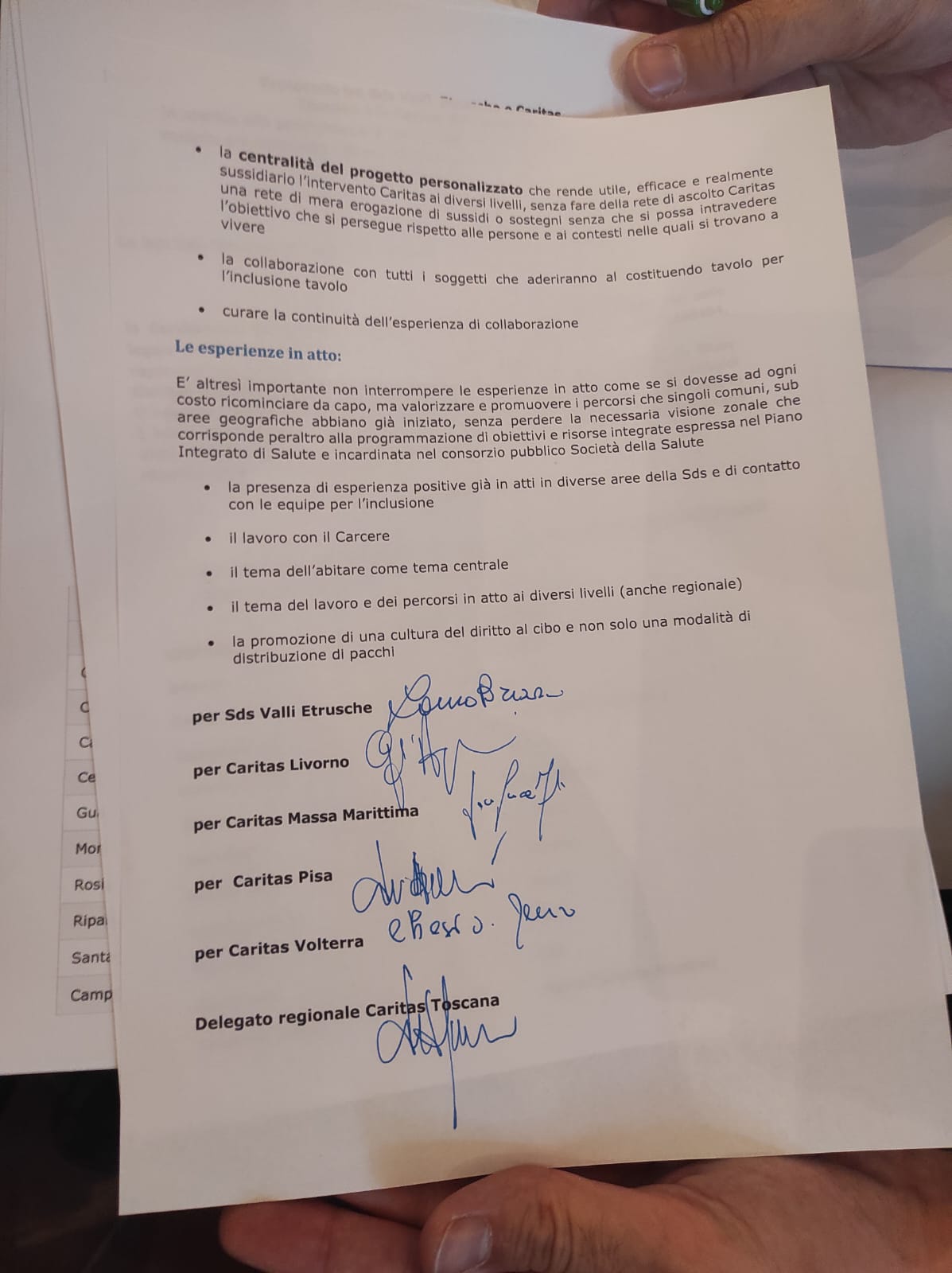 Con il protocollo firmato SdS Valli Etrusche e le Caritas del territorio si impegnano, ciascuno per le proprie competenze, a condividere ed evidenziare le problematiche presenti nei territori, cooperare per la definizione e attuazione di specifici interventi previsti dai progetti personalizzati e gestire insieme risorse in seguito anche a percorsi di evidenza pubblica.