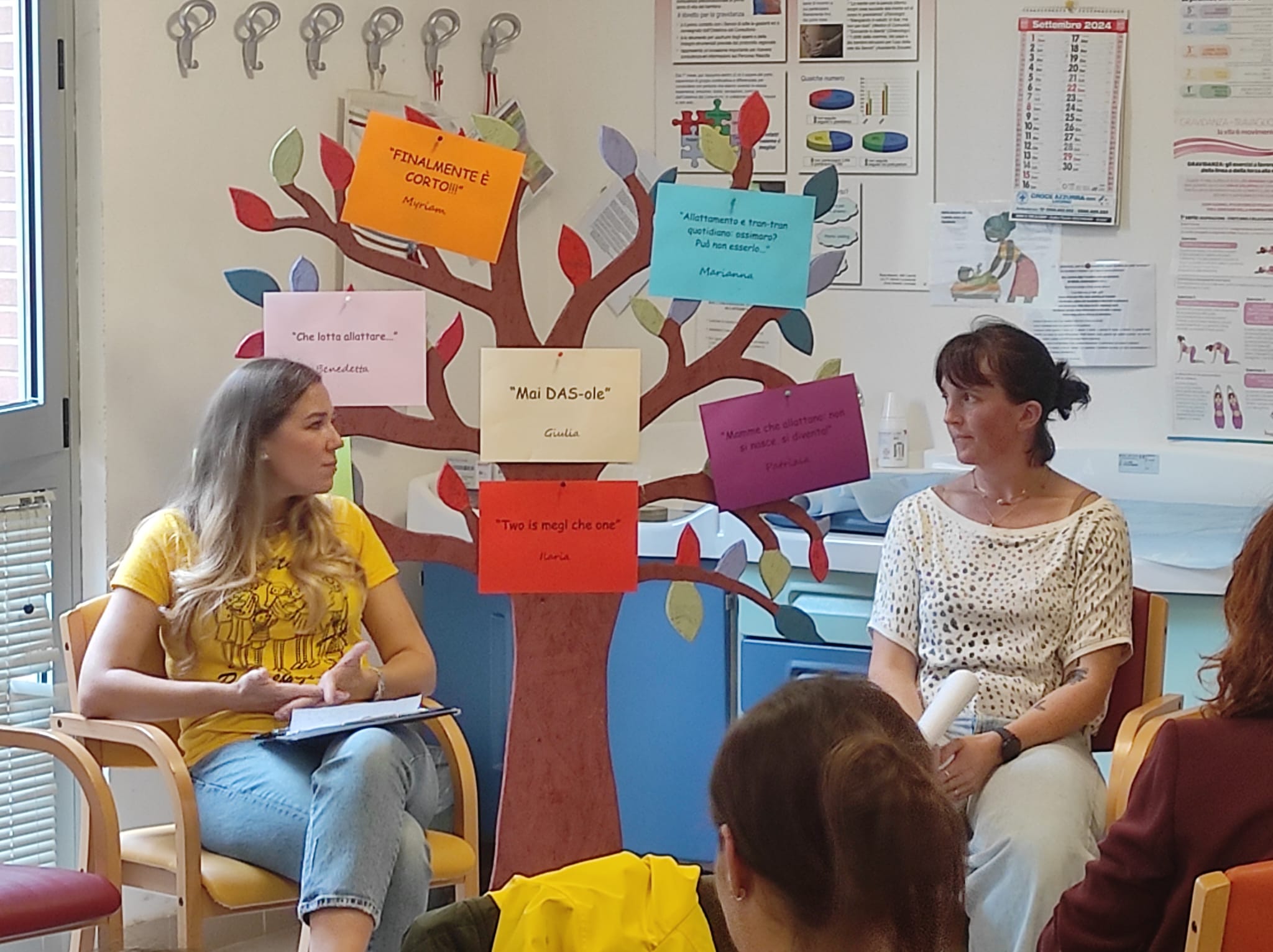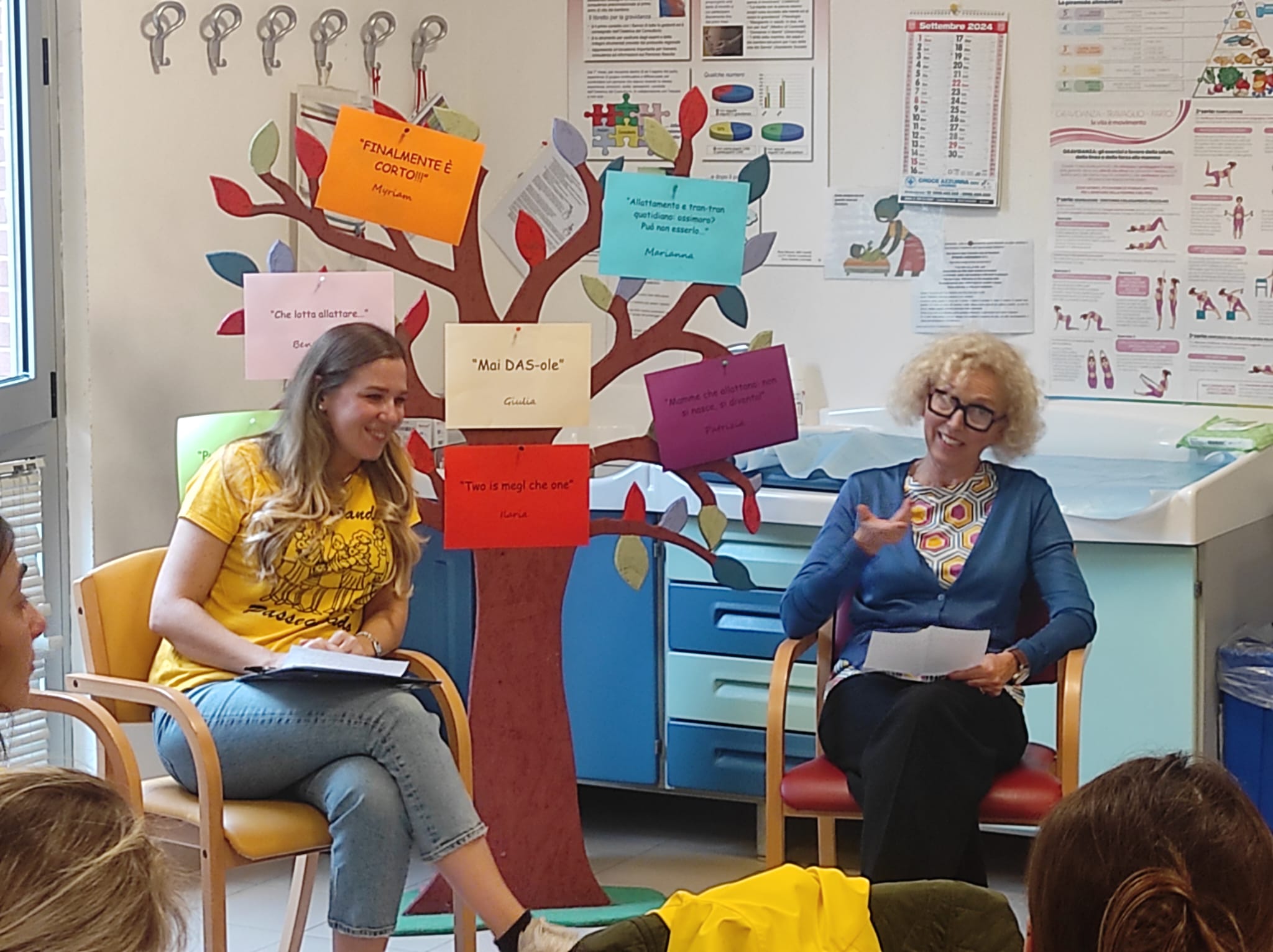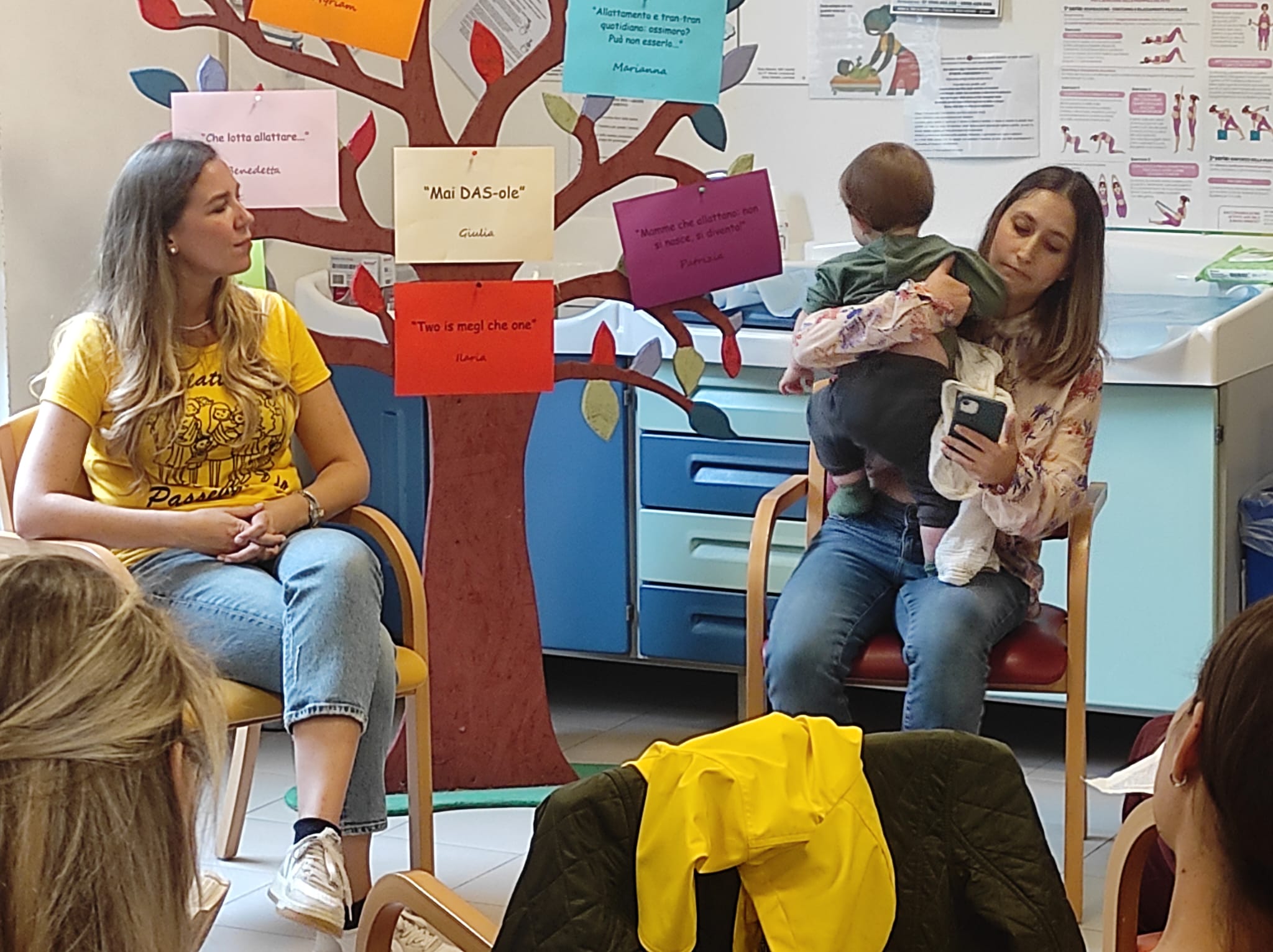 Nel corso dell’incontro sei mamme si sono “aperte come un libro” per raccontare la loro storia unica e irripetibile, ma utile a tutte le altre per vivere la propria esperienza. Così Marianna, mamma ballerina, ha raccontato la sua esperienza di "Allattamento e tran tran quotidiano: ossimoro? Può non esserlo", Giulia ha rivissuto l’aiuto fondamentale ricevuto dalle ostetriche nel suo racconto "Allattamento, mai DAS-ole", Ilaria ha proposto il suo vissuto in "Two is megl che one". Poi sono intervenute Patrizia in "Mamme che allattano: non si nasce, si diventa", Benedetta con "Che lotta allattare", Chiara con "Puppa alla seconda" e Myriam in "Finalmente è corto".