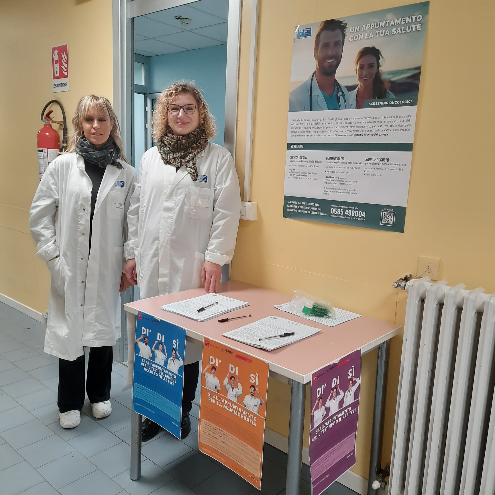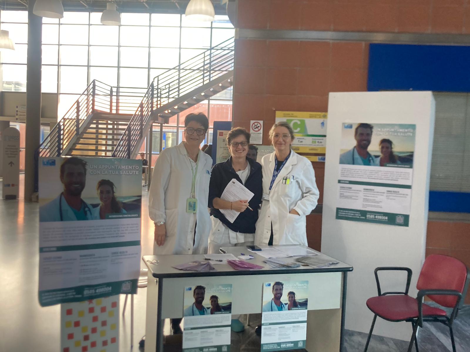 31 ottobre 2024. Bel successo dell'Open Day dell'ASL Toscana nord ovest dedicato agli screening oncologici. Ieri, mercoledì 30 ottobre, in tutto il territorio dell'Asl, da Piombino a Fivizzano, da Pontedera a Livorno passando da Lucca, dalla Versilia, in decine di punti informativi allestiti all'ingresso di ospedali e case di comunità, gli operatori sanitari hanno sensibilizzato gli utenti e i cittadini ad aderire alle tre campagne di screening gratuite per prevenire il tumore del colon retto, della mammella e della cervice uterina.