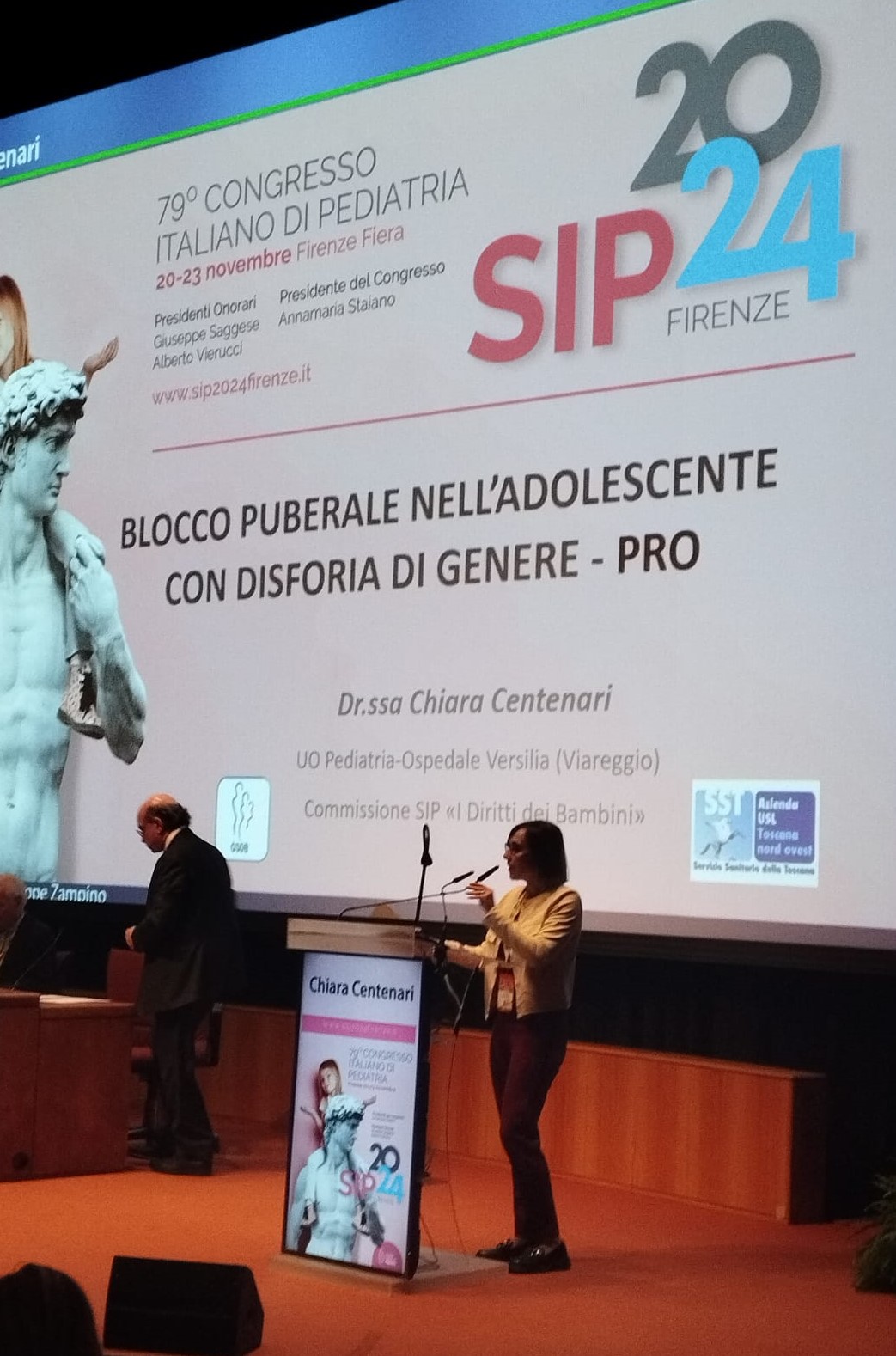 Chiara Centenari è stata invitata ad approfondire questa tematica in quanto membro della Commissione "I Diritti dei Bambini" della Società Italiana di Pediatria, che si occupa di garantire a questi adolescenti, appartenenti a minoranze di genere e sessuali, un equo accesso alle cure. Proprio nei giorni in cui si parla di violenza di genere è bene sottolineare quanto ancora le donne, così come le minoranze omo e transessuali, siano più soggette a violenza psicologica e fisica, purtroppo spesso già in famiglia e poi nella società. Questo compromette il potenziale di benessere e crescita di questi adolescenti, che vanno quindi correttamente sostenuti anche attraverso percorsi medici. Fortunatamente in Toscana il Centro per l'incongruenza di genere dell'ospedale “Careggi” di Firenze rimane un punto di riferimento per i pediatri e per le famiglie, appunto per l'invio e per la presa in carico di ragazzi e di ragazze con disforia di genere. Con la sua esperienza decennale il centro fiorentino si conferma quindi come fiore all'occhiello, tra i pochi punto di riferimento a livello nazionale per queste condizioni, a cui tutte le strutture ospedaliere e territoriali toscane si possono rivolgere.