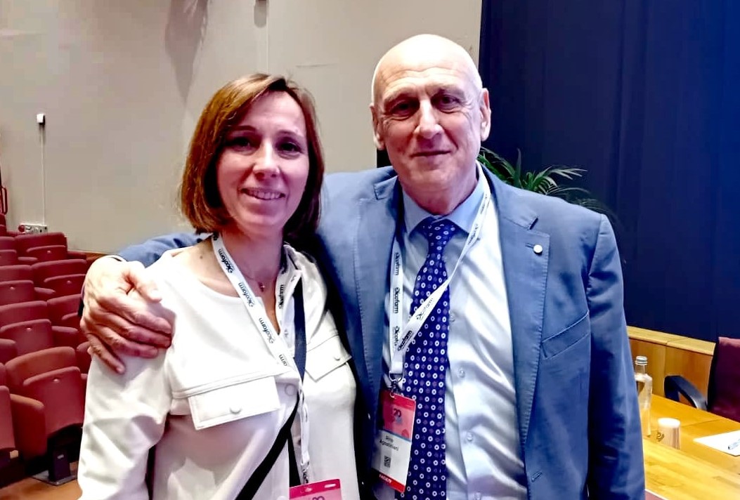 Nelle foto, la dottoressa Centenari durante la sua relazione e in una foto con il nuovo presidente della Società Italiana di Pediatria dottor Agostiniani