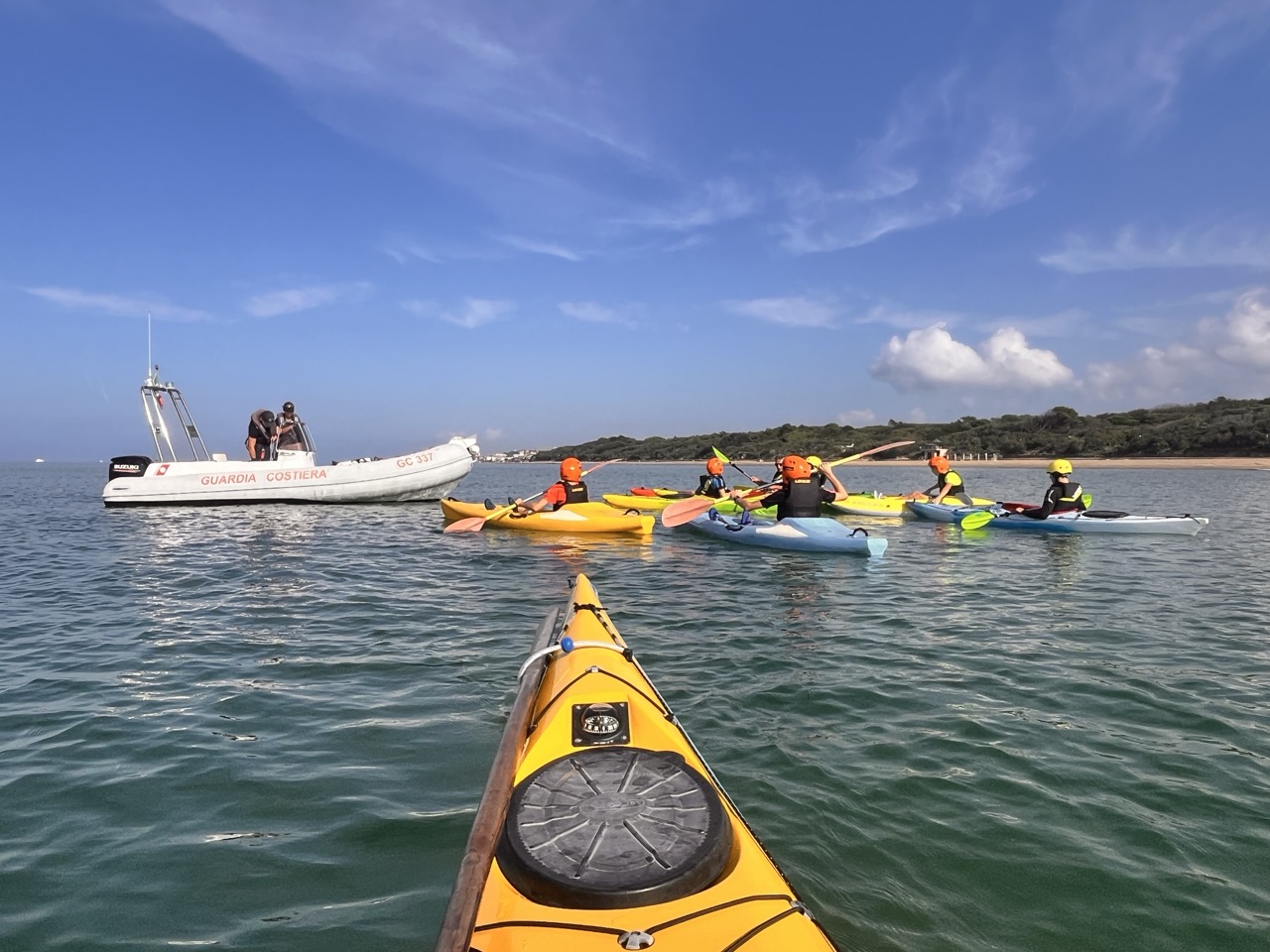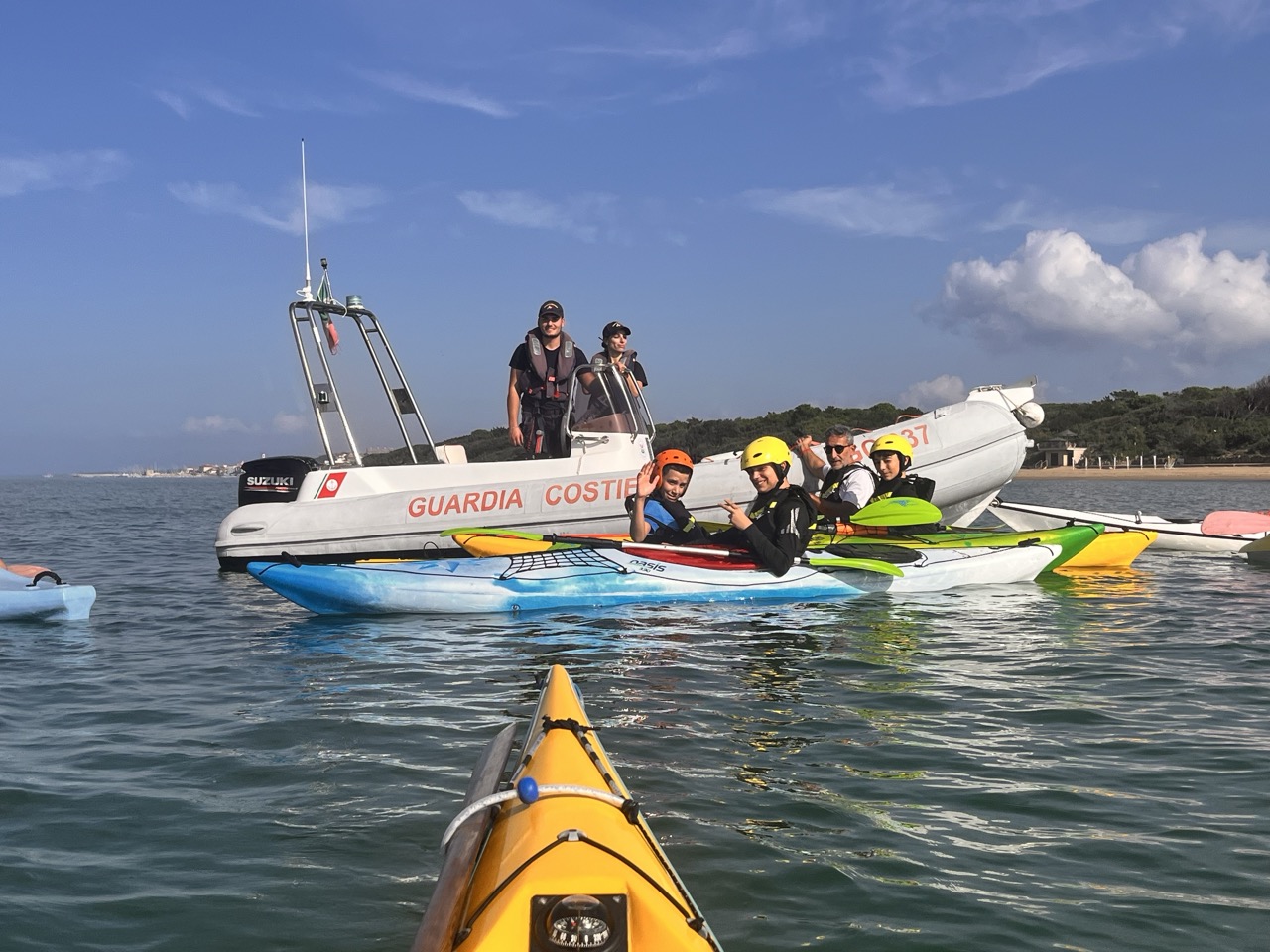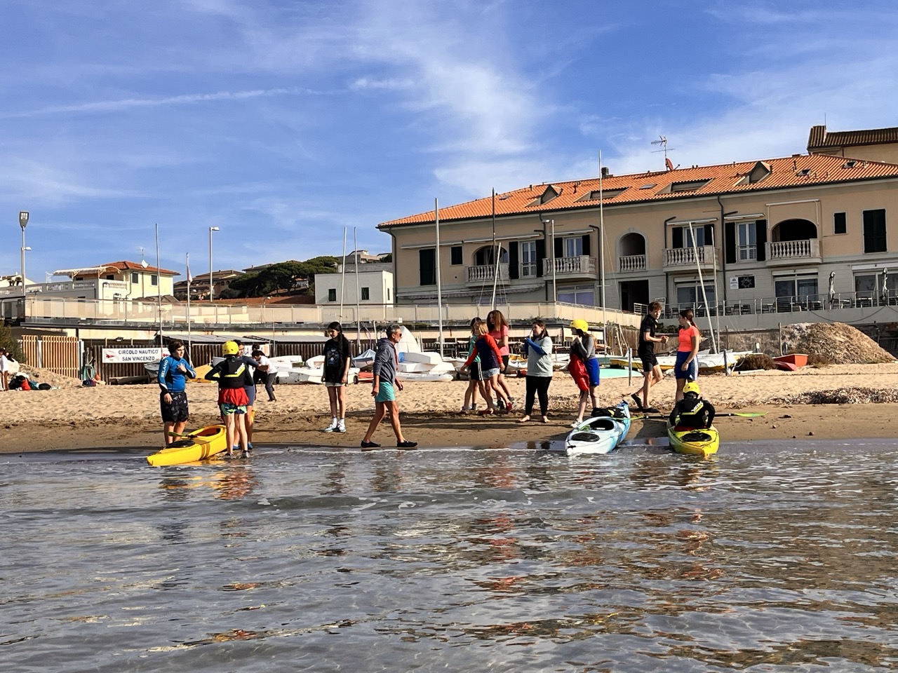 “Il kayak – spiega il coordinatore del progetto Marco Verdone – è una piccola imbarcazione, silenziosa, flessibile, ecosostenibile che permette di navigare su laghi, fiumi e mare aperto favorendo lo sviluppo, specie negli adolescenti, di molte capacità, come l’equilibrio, la coordinazione, il coraggio, l’autostima, il senso di responsabilità. Oltre a migliorare le capacità di movimento e di benessere generale assume una profonda valenza pedagogica perché stimola a un profondo senso di rispetto verso gli ecosistemi acquatici anche considerando che tutta la costa e le isole Toscane sono all’interno del Santuario Pelagos. L’Istituto di S. Vincenzo, diretto dalla professoressa Claudia Giannetti che ringraziamo per collaborazione e denominato anche “Scuola del Mare” in virtù dell’importanza che attribuisce alle attività marinare e del buon esito del progetto “Il Mondo e gli Altri Animali”, da alcuni anni si è dotato di quattro propri kayak completi dei relativi dispositivi di sicurezza per l’aiuto al galleggiamento, i caschi, ecc. Riusciamo, in base all’età dei ragazzi, a proporre attività diversificate. Così per le classi prime sono previste lezioni interattive multidisciplinari in aula con ausilio di strumenti audio-visivi. Tra questi figurano i dieci cortometraggi relativi a “Il viaggio dei due mari”, un’esperienza di navigazione di 13 giorni lungo tutta la costa toscana che Marco Verdone ha realizzato con Paolo Chiavenna nel 2023 (a questo link una sintesi del viaggio https://www.youtube.com/watch?v=DNx9Uv7-lLc). Per le seconde classi inizia la familiarizzazione con il kayak in palestra scoprendone le principali caratteristiche e tecniche di base. In seguito, si affronta una vera e propria lezione in mare nell’ambito dell’insenatura protetta della spiaggia del Golfetto. Per le classi terze, infine, quest’anno è stata introdotta una breve navigazione sempre dalla spiaggia del Golfetto al Tutun Club Sport Service di circa 2 miglia nautiche in direzione sud. Questa esperienza ha ricevuto l’assistenza in mare da parte della Delegazione di Spiaggia della Guardia Costiera di San Vincenzo il cui comandante Paolo Rinaldi, ha messo a disposizione un battello pneumatico per garantire la giusta cornice di sicurezza durante la navigazione”.