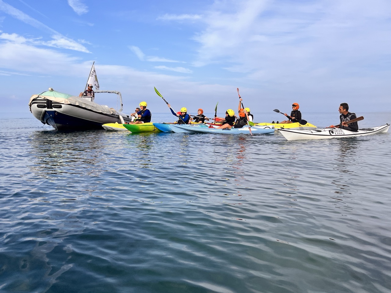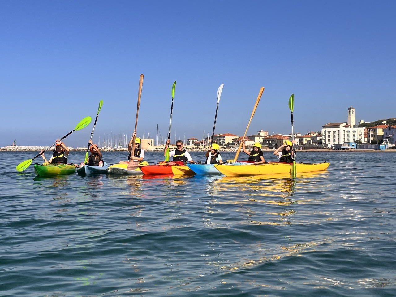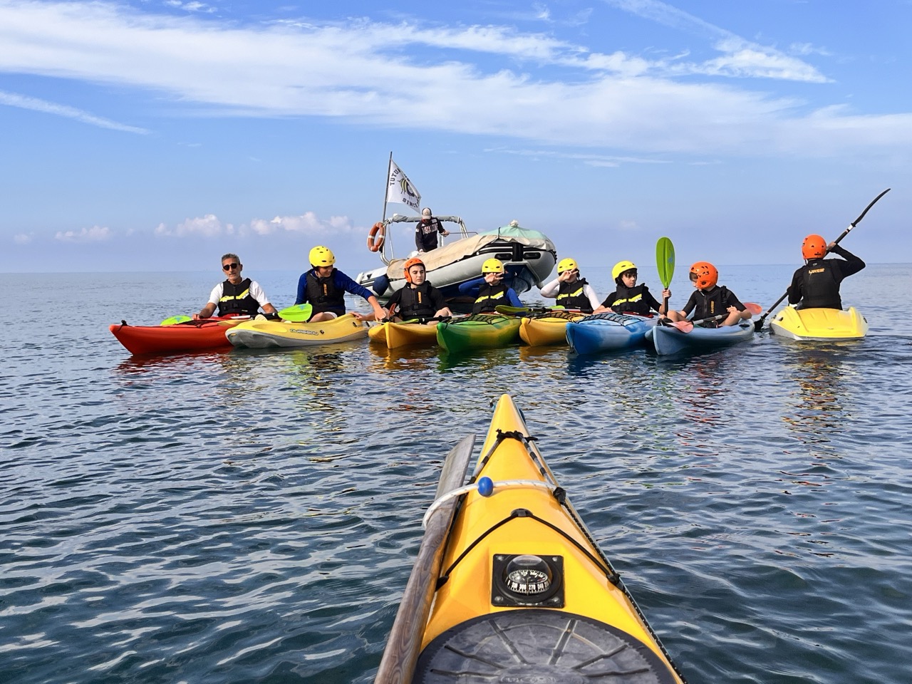 “Il kayak – spiega il coordinatore del progetto Marco Verdone – è una piccola imbarcazione, silenziosa, flessibile, ecosostenibile che permette di navigare su laghi, fiumi e mare aperto favorendo lo sviluppo, specie negli adolescenti, di molte capacità, come l’equilibrio, la coordinazione, il coraggio, l’autostima, il senso di responsabilità. Oltre a migliorare le capacità di movimento e di benessere generale assume una profonda valenza pedagogica perché stimola a un profondo senso di rispetto verso gli ecosistemi acquatici anche considerando che tutta la costa e le isole Toscane sono all’interno del Santuario Pelagos. L’Istituto di S. Vincenzo, diretto dalla professoressa Claudia Giannetti che ringraziamo per collaborazione e denominato anche “Scuola del Mare” in virtù dell’importanza che attribuisce alle attività marinare e del buon esito del progetto “Il Mondo e gli Altri Animali”, da alcuni anni si è dotato di quattro propri kayak completi dei relativi dispositivi di sicurezza per l’aiuto al galleggiamento, i caschi, ecc. Riusciamo, in base all’età dei ragazzi, a proporre attività diversificate. Così per le classi prime sono previste lezioni interattive multidisciplinari in aula con ausilio di strumenti audio-visivi. Tra questi figurano i dieci cortometraggi relativi a “Il viaggio dei due mari”, un’esperienza di navigazione di 13 giorni lungo tutta la costa toscana che Marco Verdone ha realizzato con Paolo Chiavenna nel 2023 (a questo link una sintesi del viaggio https://www.youtube.com/watch?v=DNx9Uv7-lLc). Per le seconde classi inizia la familiarizzazione con il kayak in palestra scoprendone le principali caratteristiche e tecniche di base. In seguito, si affronta una vera e propria lezione in mare nell’ambito dell’insenatura protetta della spiaggia del Golfetto. Per le classi terze, infine, quest’anno è stata introdotta una breve navigazione sempre dalla spiaggia del Golfetto al Tutun Club Sport Service di circa 2 miglia nautiche in direzione sud. Questa esperienza ha ricevuto l’assistenza in mare da parte della Delegazione di Spiaggia della Guardia Costiera di San Vincenzo il cui comandante Paolo Rinaldi, ha messo a disposizione un battello pneumatico per garantire la giusta cornice di sicurezza durante la navigazione”.