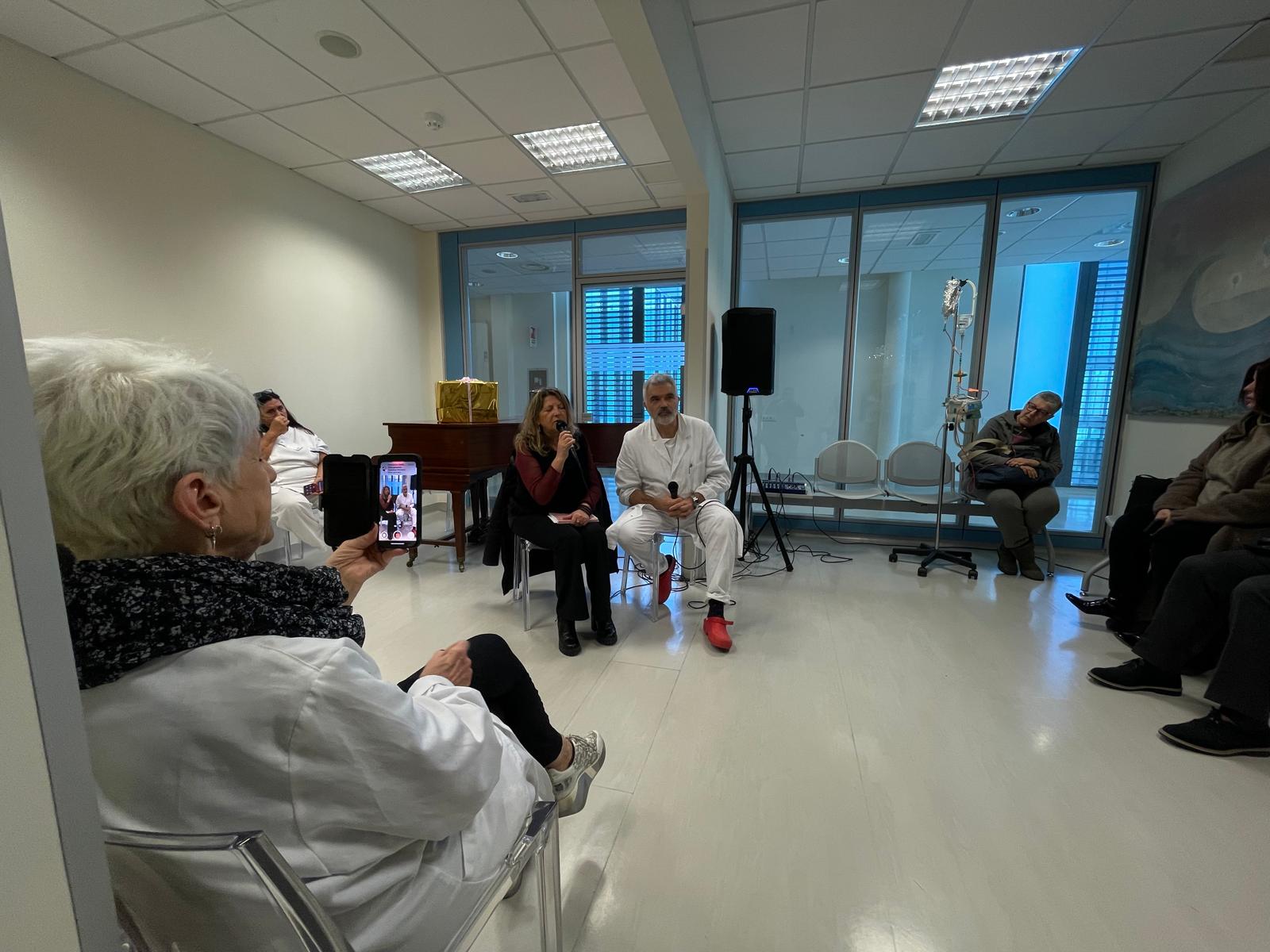 E' stata proprio Angela Maria Fruzzetti insieme ad Andrea Mambrini a portare personalmente il libro alle pazienti in terapia, un regalo gradito e ripagato con un sorriso di gratitudine.