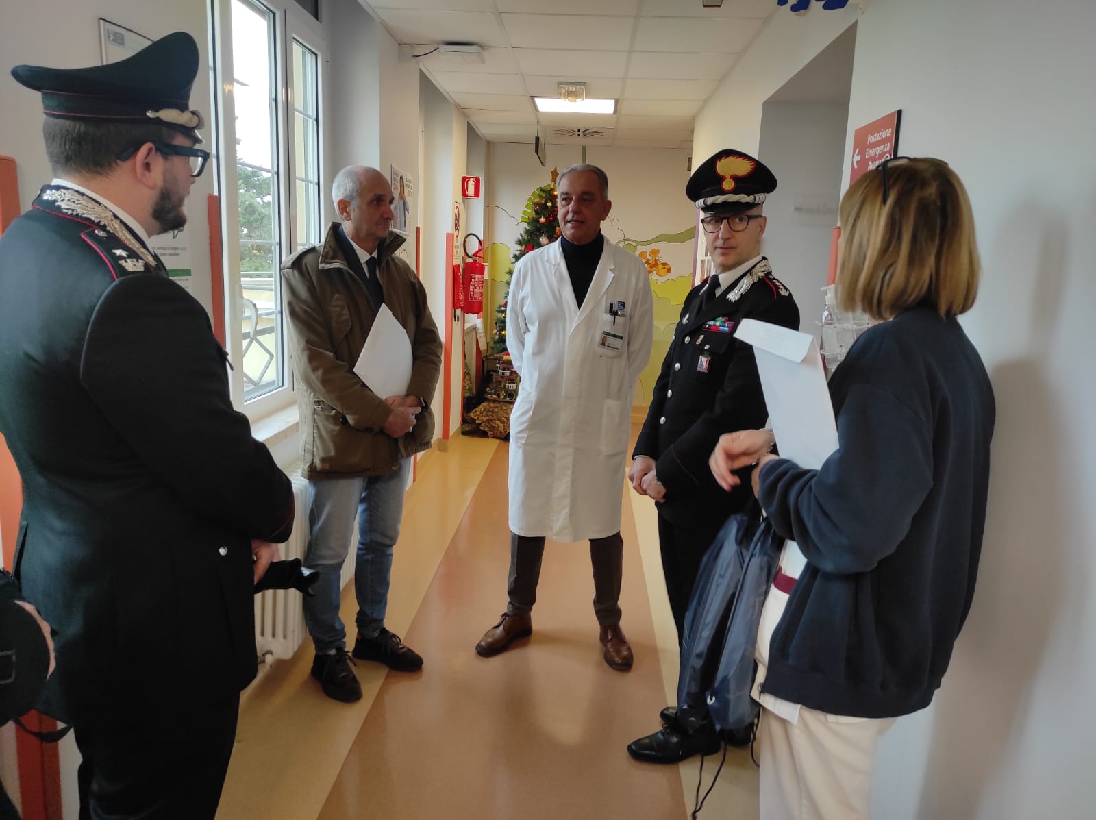 LIVORNO, 10 dicembre 2024 - I Carabinieri del Comando Provinciale di Livorno, d’intesa con l’Azienda USL Toscana nord ovest ed il Presidio Ospedaliero di Livorno, hanno voluto rinnovare l’iniziativa organizzata in pregresse occasioni facendo una gradita sorpresa ai piccoli degenti del Reparto di Pediatria cittadino portando loro doni e facendo gli auguri natalizi ai piccoli pazienti ed alle loro famiglie, costretti a rimanere nell’ambiente ospedaliero a causa della malattia.