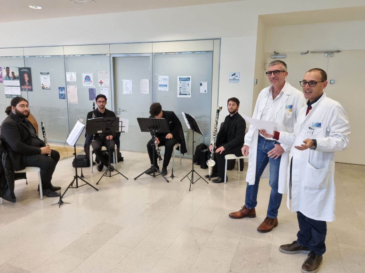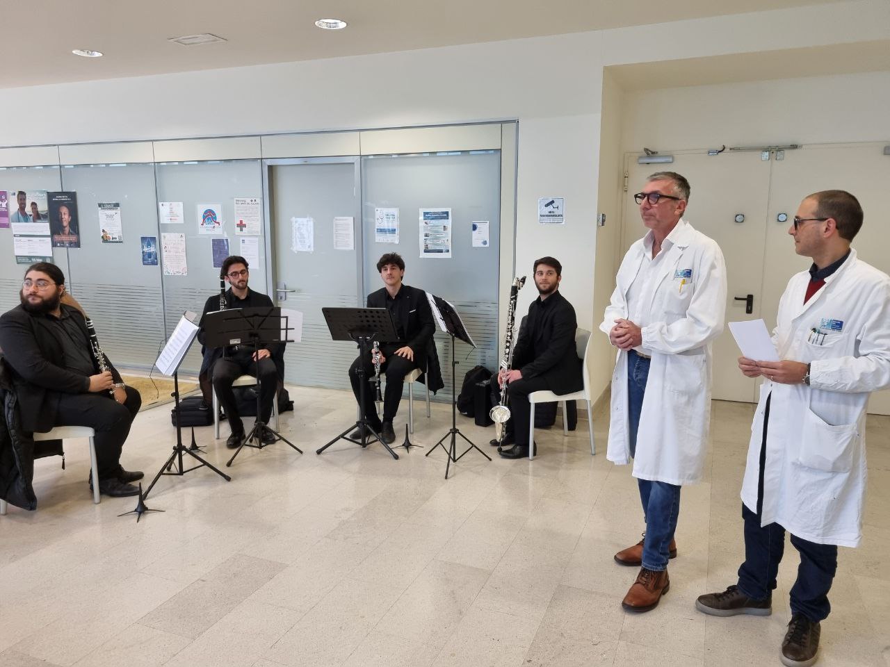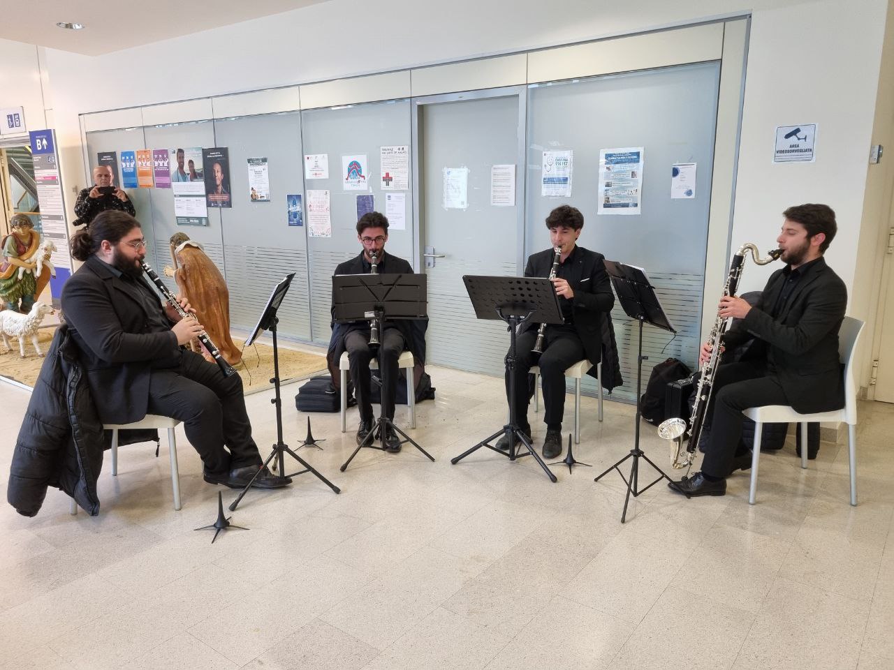A seguire si è svolto nella hall un applaudito concerto di allievi del Conservatorio di Musica Luigi Boccherini di Lucca. Si è infatti esibito il Quartetto dei Clarinetti formato da Gabriele Petriccioli, Luca Mannini, Daniele Merlo e Tommaso Andreotti, con un programma molto suggestivo e musiche in particolare di Tchaikovsky, Anschutz, Tannenbaum, Gruber, Grieg, Martin, Pachelbel, Mascagni, Pierpoint, e ovviamente Puccini (Scossa elettrica, La Tragenda da “Le Villi”, Nessun dorma da “Turandot”). Visto il periodo, i quattro giovani musicisti hanno offerto all'ampia e interessata platea anche alcuni canti tradizionali natalizi, anch’essi molto apprezzati dai presenti.