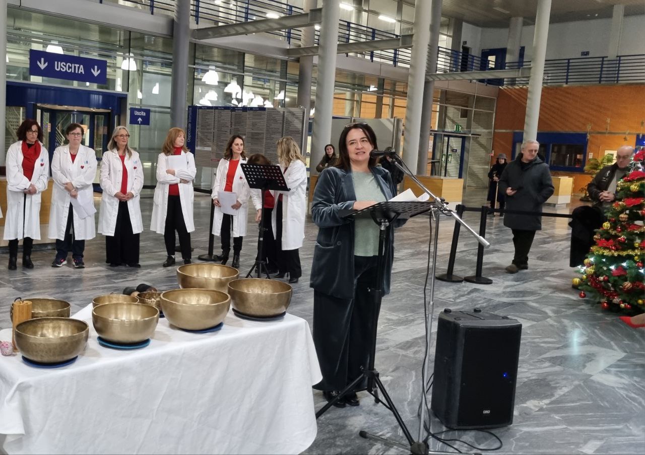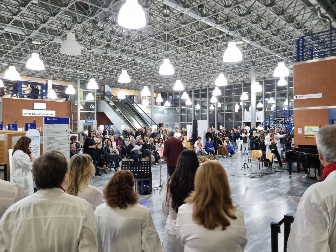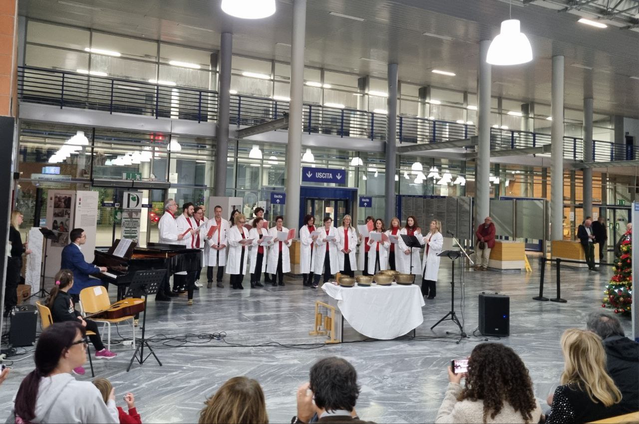 Dopo la Messa celebrata da don Graziano, l'atrio dell'ospedale si è infatti trasformato in sala concerto, sulle note di Puccini e delle più famose arie natalizie.