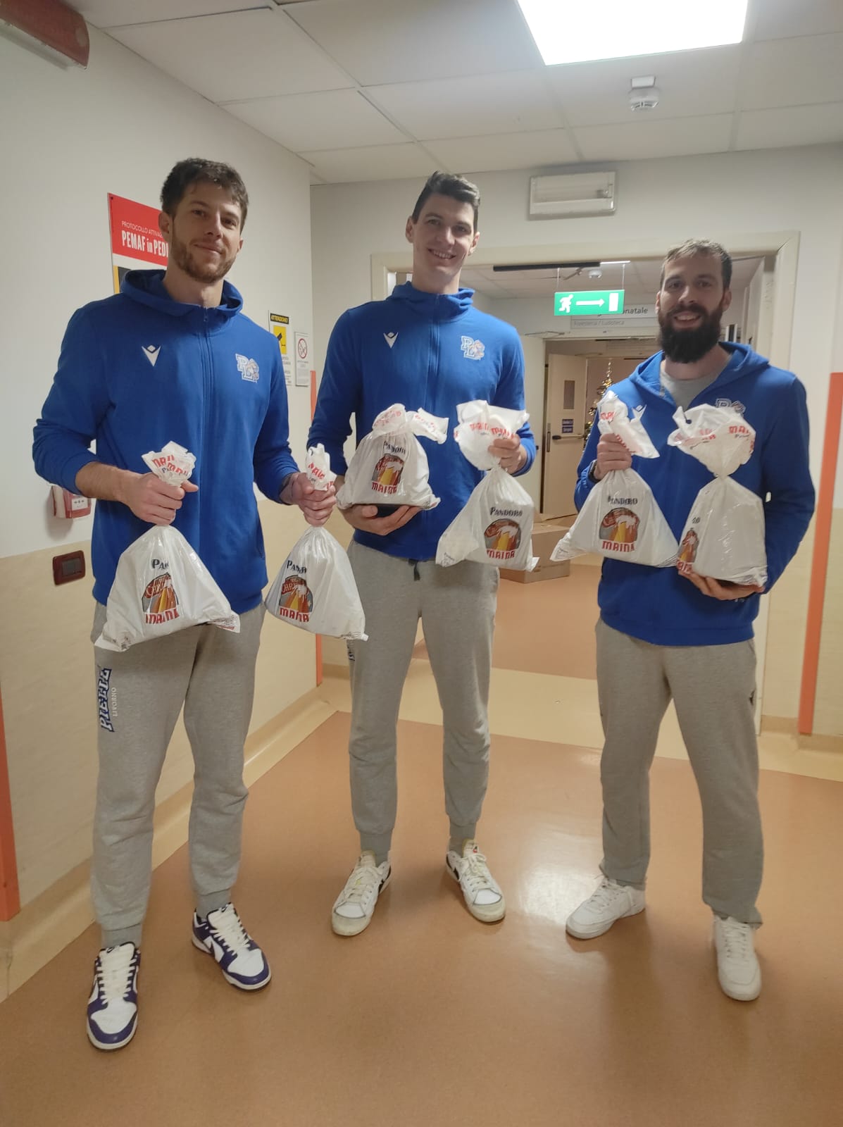 LIVORNO, 18 dicembre 2024 – Ancora regali, affetto e ambitissimi selfie per i piccoli pazienti della Pediatria di Livorno. Oggi a far sentire la loro vicinanza ai piccoli degenti ci hanno pensato l'associazione "Il porto dei piccoli" venuti assieme al personale (sottocapo Marino Santa e comune Calia Francesco) della Direzione Marittima di Livorno guidata dall'Ammiraglio Giovanni Canu, e una rappresentanza della Pallacanestro Livorno (i giocatori Jacopo Vedovato, Matteo Paesano e Davide Bonacini accompagnati da Andrea Lazzerini e Vanessa Gori).