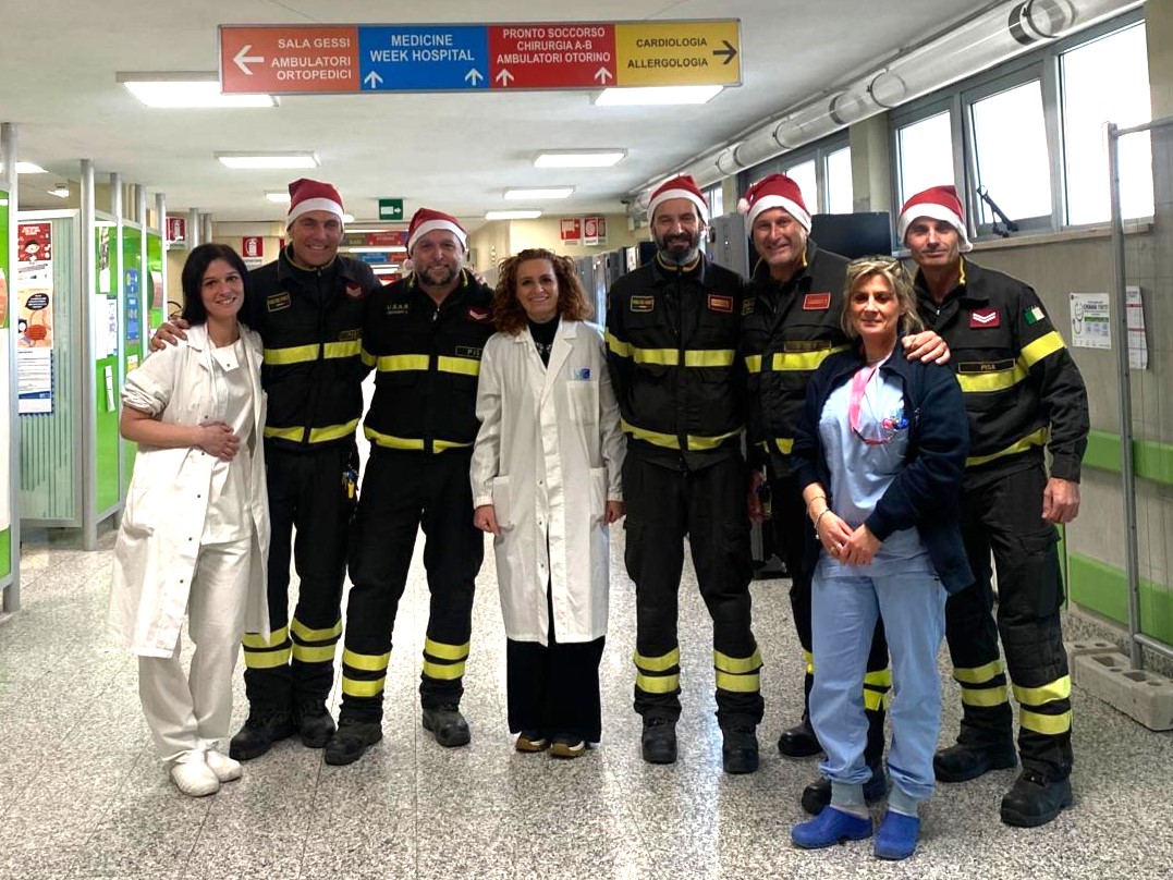 Pontedera, 23 dicembre 2024. Sabato 21 dicembre un'atmosfera speciale ha invaso il reparto di pediatria dell'ospedale “Lotti”, dove, grazie ai Vigili del fuoco del distaccamento di Cascina, è stato portato un tocco di gioia ai bambini ricoverati. I pompieri, infatti, hanno fatto visita ai piccoli pazienti e a quelli presenti nel pronto soccorso pediatrico, consegnando regali pensati per rallegrare il loro Natale. Dalla direzione ospedaliera dell’ospedale “Lotti” un sentito ringraziamento al corpo dei Vigili del fuoco per questo bel gesto di vicinanza davvero molto apprezzato.