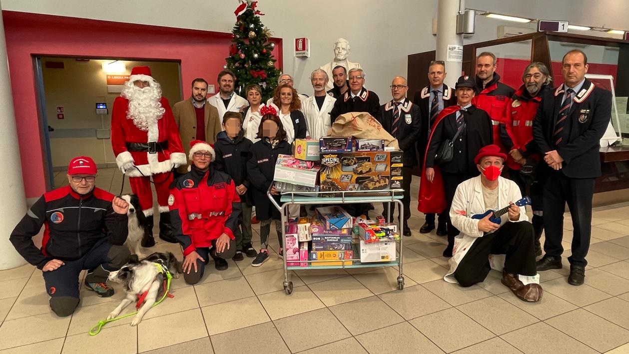 Pontedera, 24 dicembre 2024. Stamattina, 24 dicembre, il Nucleo di volontariato dell'Associazione nazionale carabinieri di Pontedera e Ponsacco ha portato doni ai bambini ricoverati presso il reparto di pediatria dell'ospedale “Lotti”.