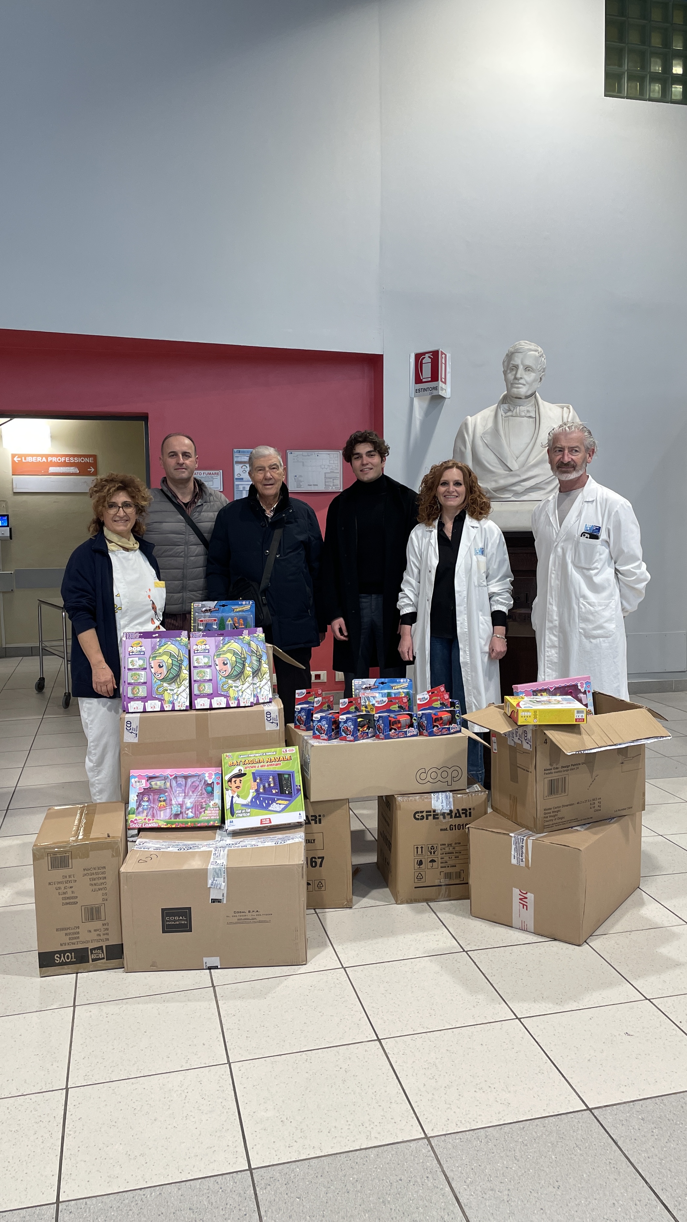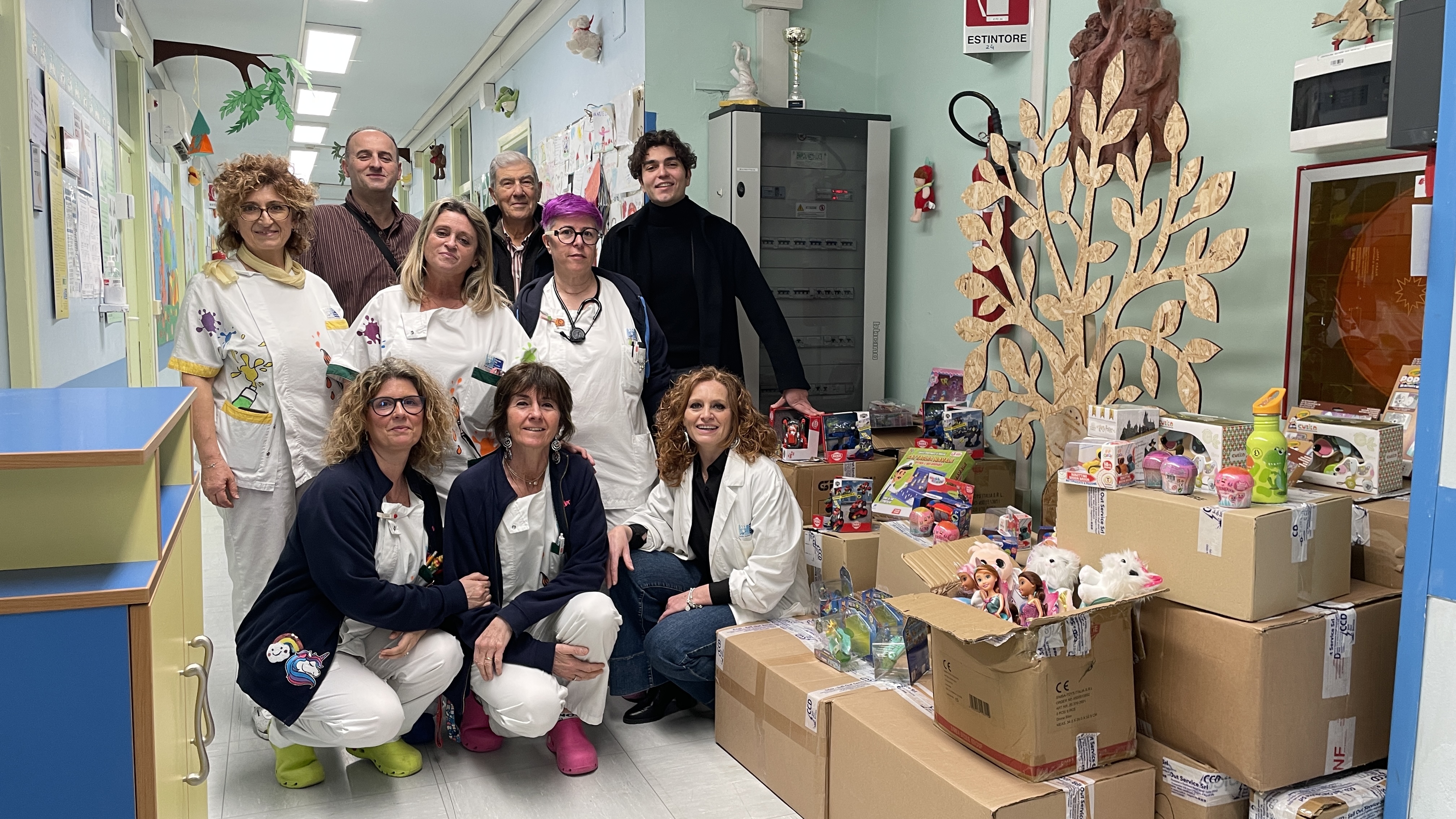 Alla consegna delle numerose scatoli di doni erano presenti Davide Traballoni, dirigente infermieristico, Monica Guarguagli, coordinatrice infermieristica, Claudia Maggi, direttrice facente funzioni della pediatria e il personale del reparto.