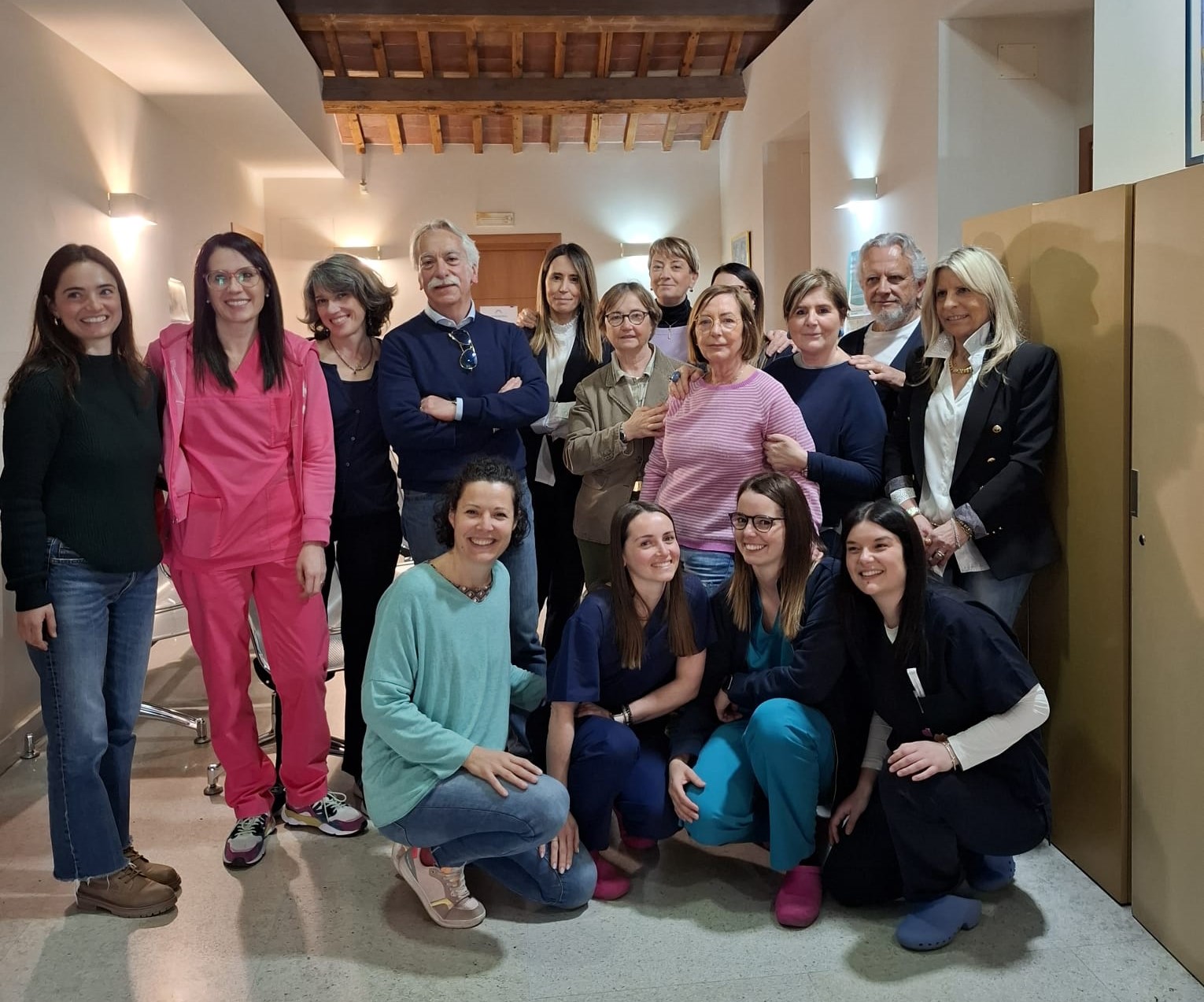 Oggi (25 marzo), ultimo giorno di ambulatorio, è stata festeggiata dalle attuali colleghe del gruppo (le dottoresse Camici, Simi, Domenici e Di Dia), dagli ex colleghi che con lei e la dottoressa Camici hanno costituito il gruppo (la dottoressa Riotta e i dottori Barsotti e Fortunato) e dalle affezionate infermiere e segretarie.