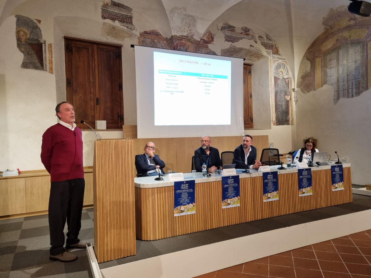 E’ seguito l’intervento del responsabile dell’unità funzionale Igiene e sanità pubblica della Zona Versilia Franco Barghini, sulla prevenzione delle malattie infettive nella vita comunitaria e quindi sull’importanza delle vaccinazioni, in particolare contro influenza, pneumococco, herpes zoster, Sars Cov-2 e virus respiratorio sinciziale nelle persone anziane è più fragili. Per ognuno dei vaccini Barghini ha fornito ai cittadini presenti indicazioni e consigli utili.