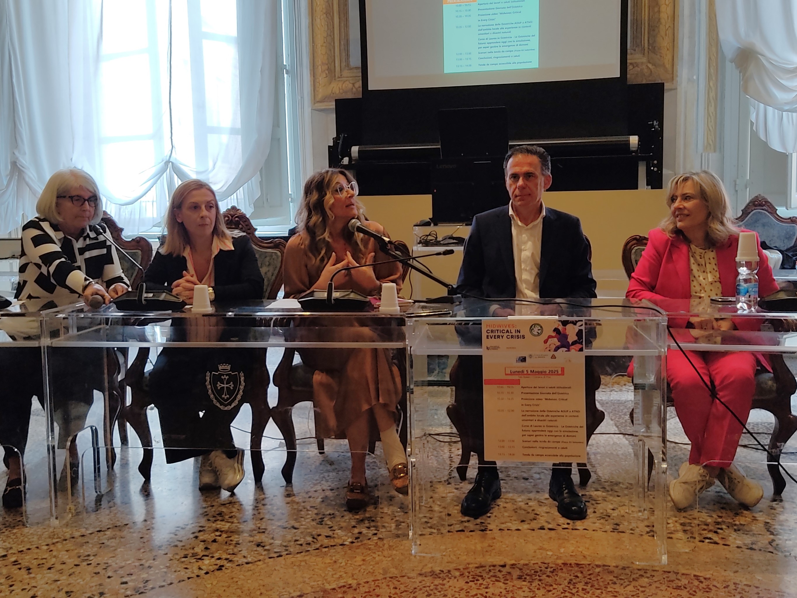 Pisa, 5 maggio 2025. Il 5 maggio di ogni anno si celebra in tutto il mondo la Giornata internazionale dell'ostetrica. Per far conoscere il ruolo di questa professione sanitaria e sensibilizzare l'opinione pubblica sulla sua importanza, l'Azienda USL Toscana nord ovest e l'Azienda ospedaliero-universitaria pisana hanno organizzato l'evento "Ostetriche: fondamentali in ogni crisi"", che si è svolto stamattina in municipio a Pisa.