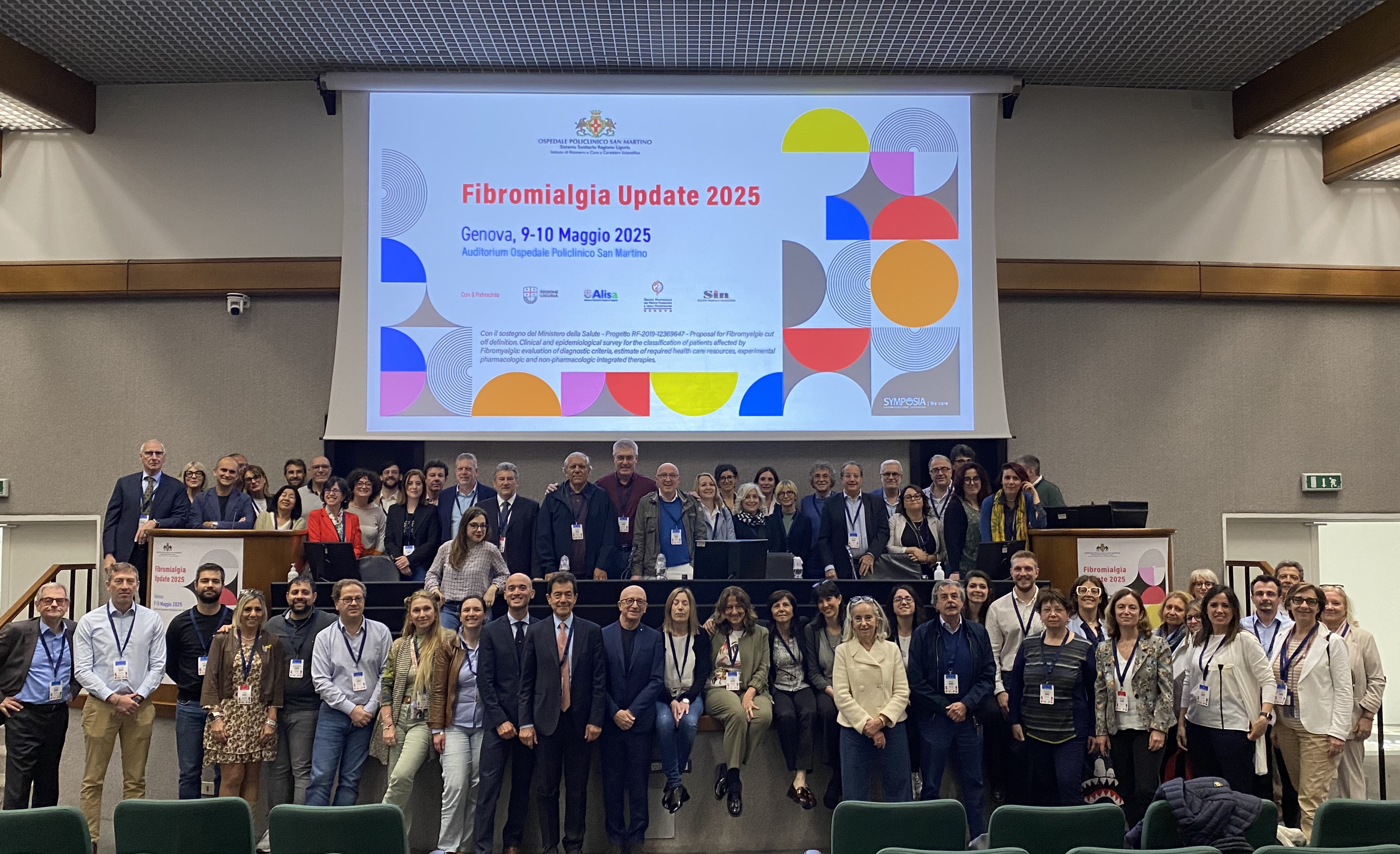 una foto di gruppo dei partecipanti al convegno “Fibromialgia update 2025”.