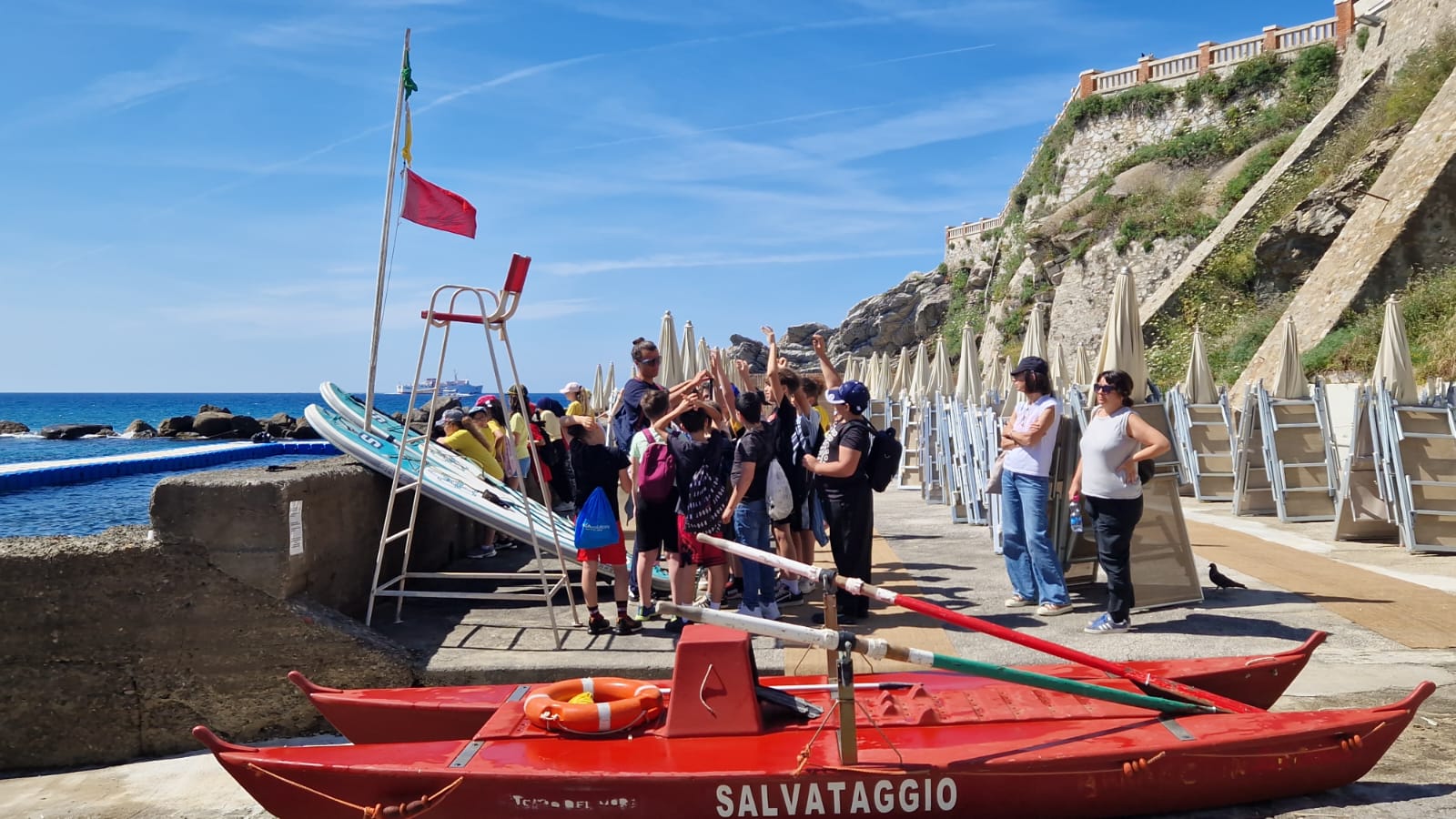 Nel corso dell’evento, durante il quale è intervenuta l'assessora all'ambiente del Comune di Piombino, Rossana Bacci, i ragazzi hanno potuto assistere alle simulazioni di salvataggio con le unità cinofile e con la motovedetta della capitaneria di Piombino grazie anche al supporto del bagnino del Teatro del Mare. Hanno poi potuto visitare gli stand delle associazioni sostenitrici dell’iniziativa e le postazioni della Guardia costiera con scuola di nodi Savoia e della scuola di sup.