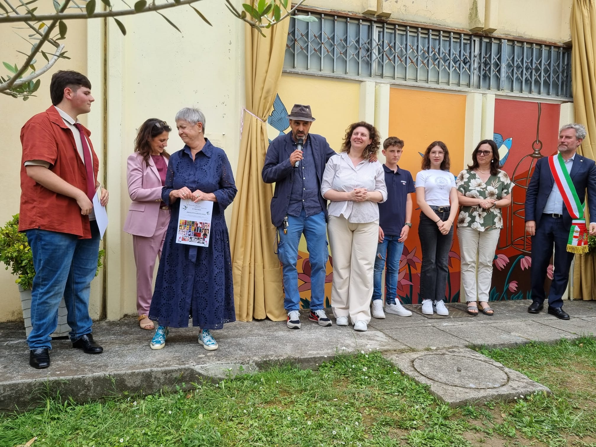 Dopo la scopertura del murale, sono stati premiati i tre studenti del Liceo Artistico Passaglia che hanno realizzato i bozzetti vincitori del concorso: oltre a Yari Bertini, Brigitta Rotunno e Abiel Castriglia.