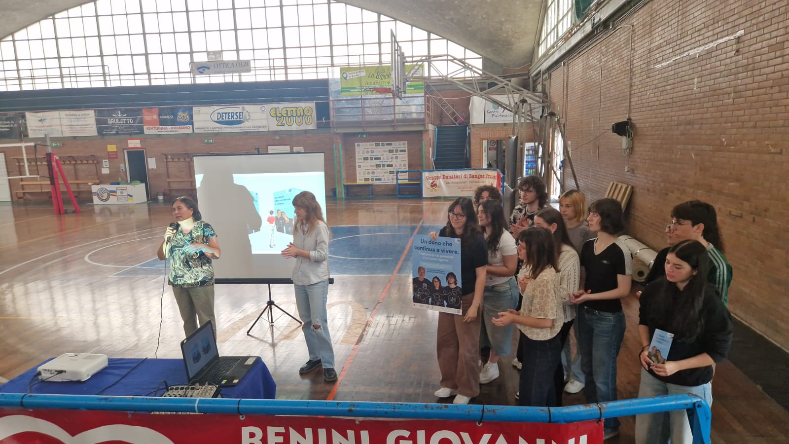 PIOMBINO, 5 giugno 2025 – Si è svolta nei giorni scorsi al palazzetto dello sport “M. Falci” di Piombino la giornata finale dei progetti per la sensibilizzazione dei ragazzi delle scuole e in generale dei cittadini alla donazione. Hanno partecipato le classi quarte del Liceo Artistico dell'ISIS Val di Cornia e delle classi 4°BIO e 4° C Scienze Applicate dell'ISIS Carducci Volta Pacinotti che nel corso dell'anno scolastico gli studenti si sono impegnati in due progetti, entrambi volti a promuovere la solidarietà, la donazione e il senso civico, organizzati dalla referente della UOS Educazione e Promozione della Salute Zona Valli Etrusche, Nicoletta Cioli.