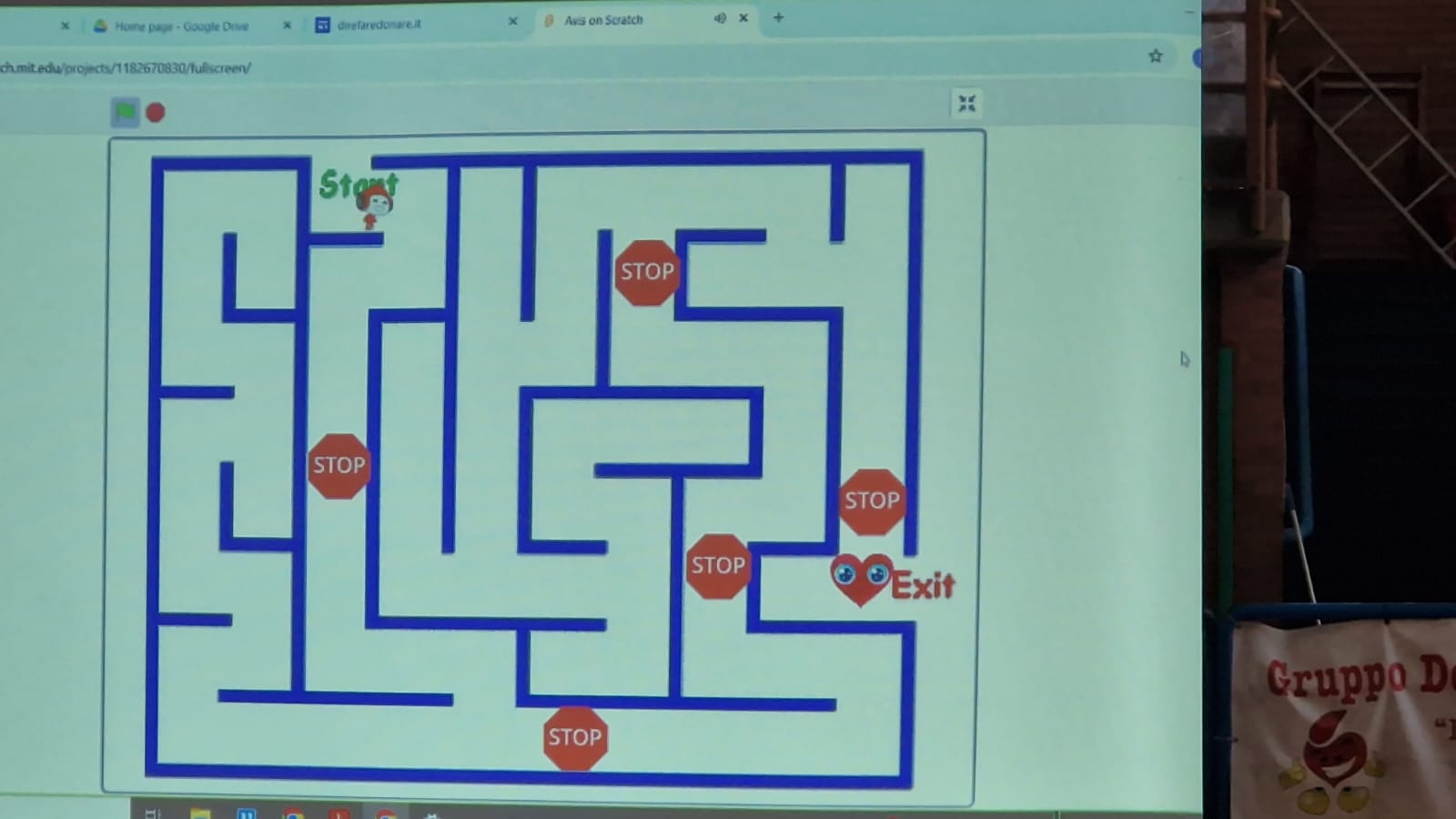La classe 4°C ha costruito un sito dove i più piccoli potranno ricevere molte informazioni in modo divertente attraverso cartoni animati e giochi come il labirinto tipo Pacman e il puzzle accompagnati da GocciaRosso (Una Goccia di sangue coraggiosa e determinata protagonista del gioco) e Lina Cuoricina (Un piccolo cuore amico che ha bisogno di aiuto perchè è debole senza abbastanza songue ). Le domande alle quali i bambini devono rispondere per proseguire i giochi riguardano naturalmente i componenti del sangue, la loro specifica funzione e la compatibilità dei gruppi sanguigni (Link: https://scratch.mit.edu/projects/1182670830).