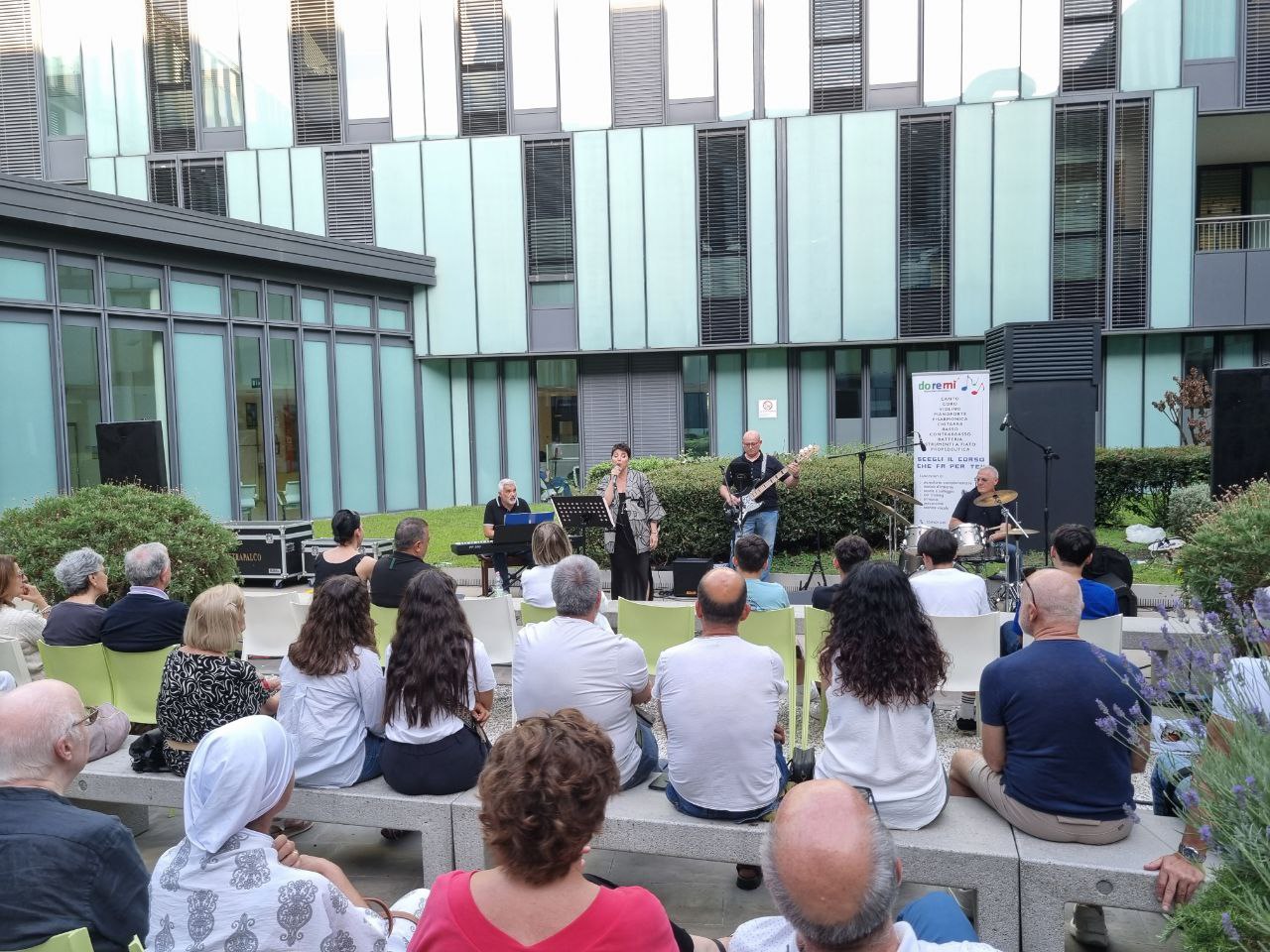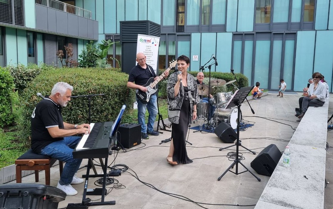 Martedì 18 giugno, in un’ambientazione particolare, nel cortile interno della struttura ospedaliera, si è svolto il concerto del gruppo “Alter Ego”, formato proprio da Mambrini insieme a Sara Mussi (voce), Paolo Vitelli (basso) e Ferdinando Martinucci (batteria).