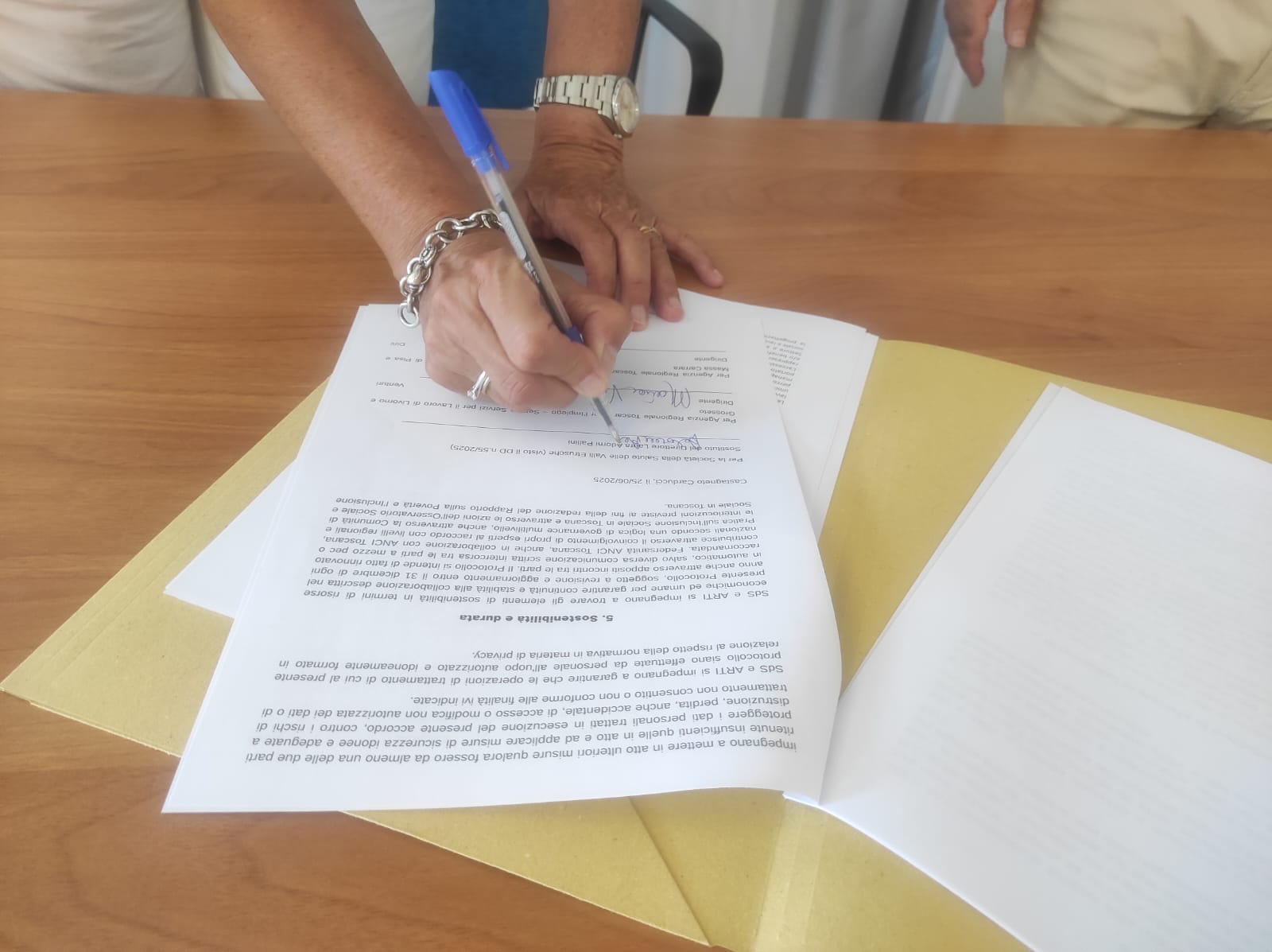 VALLI ETRUSCHE, 25 giugno 2025 - É stato sottoscritto questa mattina nella Sala Convegni della Casa della Salute di Donoratico il “Protocollo d’Intesa per la costituzione e il funzionamento del Servizio Integrato Inclusione Lavoro (SIIL)” tra la Società della Salute Valli Etrusche, Agenzia Regionale Toscana per l’Impiego (ARTI) Livorno – Grosseto e Pisa – Massa Carrara e Federsanità ANCI Toscana. “Il nuovo documento alla luce delle indicazioni regionali – spiega la dirigente dei Servizi Sociali delle Valli Etrusche, Laura Adorni Pallini che ha introdotto l’evento – permetterà sviluppare progetti personalizzati d'inclusione sociale e lavorativa, ponendo al centro le persone che vivono situazioni complesse di svantaggio, povertà ed emarginazione. Tutto questo senza dimenticare di valorizzare quanto già sperimentato negli anni precedenti”.