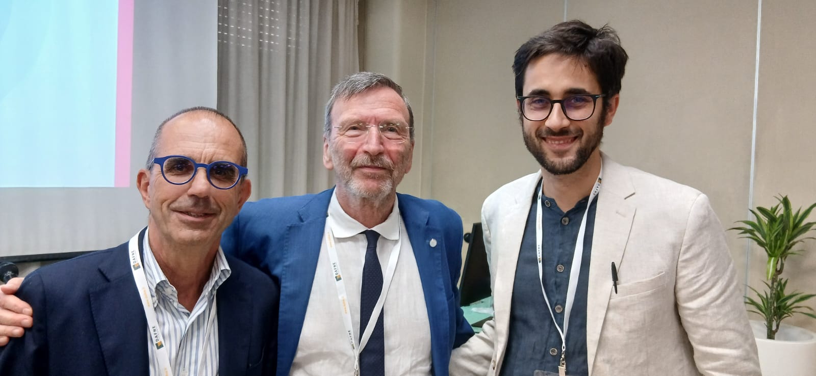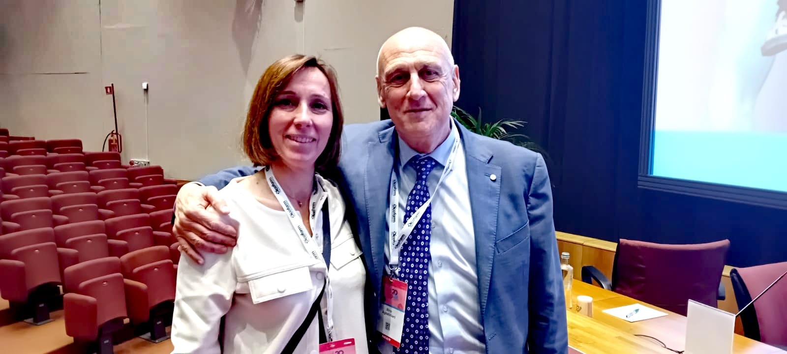 In allegato due immagini: nella prima foto la dottoressa Centenari assieme al presidente della Società Italiana di Pediatria Rino Agostiniani; nella seconda foto il dottor Maiorino (a destra) assieme al professor Massimo Agosti, presidente della Società Italiana di Neonatologia (al centro) e al dottor Gagliardi (a sinistra).