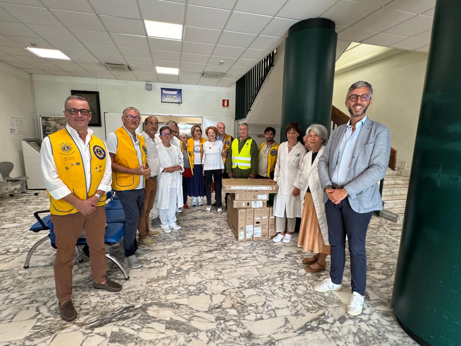 Barga, 4 settembre 2025 – Otto televisori per migliorare il comfort dei pazienti ricoverati nella struttura di Medicina dell’ospedale di Barga. E’ questa l’importante donazione effettuata dal Lions Club Garfagnana al “San Francesco”, che è stata presentata ufficialmente alla presenza del direttore degli ospedali di Lucca e Valle del Serchio Francesco Puggelli e della responsabile della direzione sanitaria del presidio ospedaliero della Valle Romana Lombardi, insieme al personale della Medicina e della Direzione infermieristica.