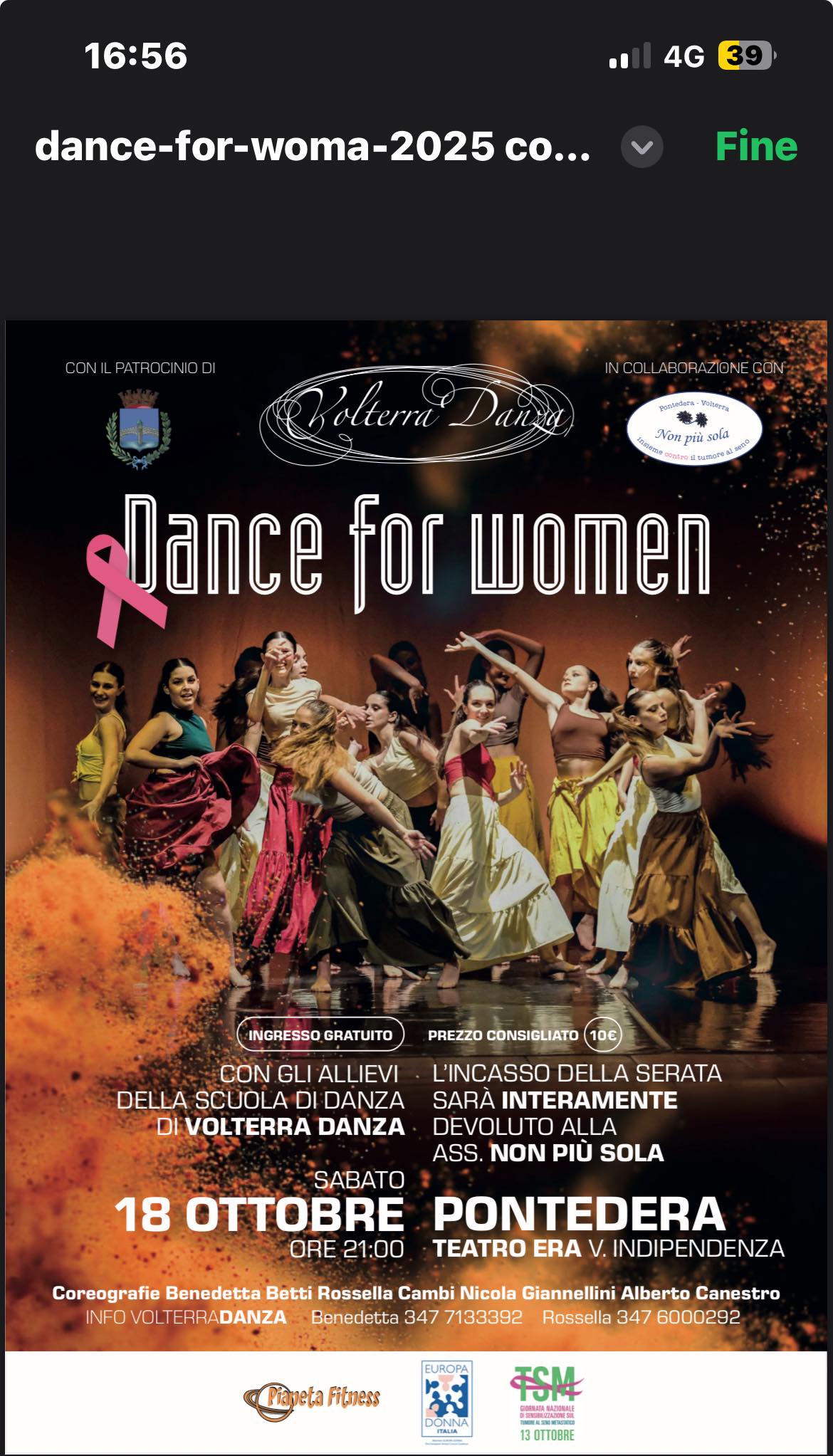 Pontedera, 16 ottobre 2025 - Dance for Women, il 18 ottobre uno spettacolo al Teatro Era, pensato per le donne promosso dall’associazione di volontariato Non Più Sola che da anni è accanto alle donne operate al seno attraverso la collaborazione con la Breast Unit degli ospedali Pontedera e di Volterra.